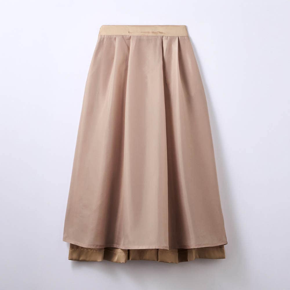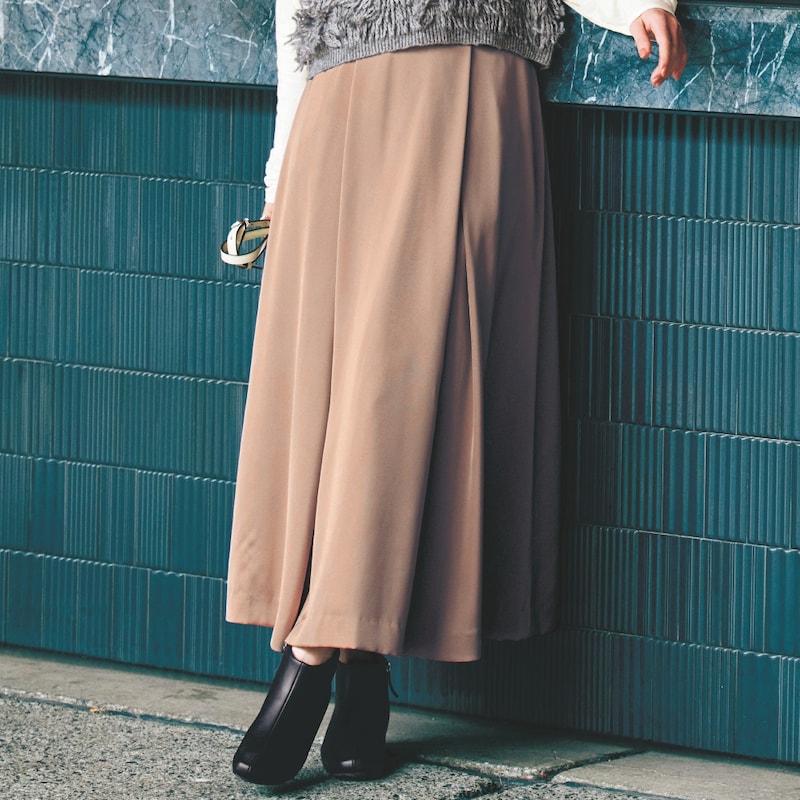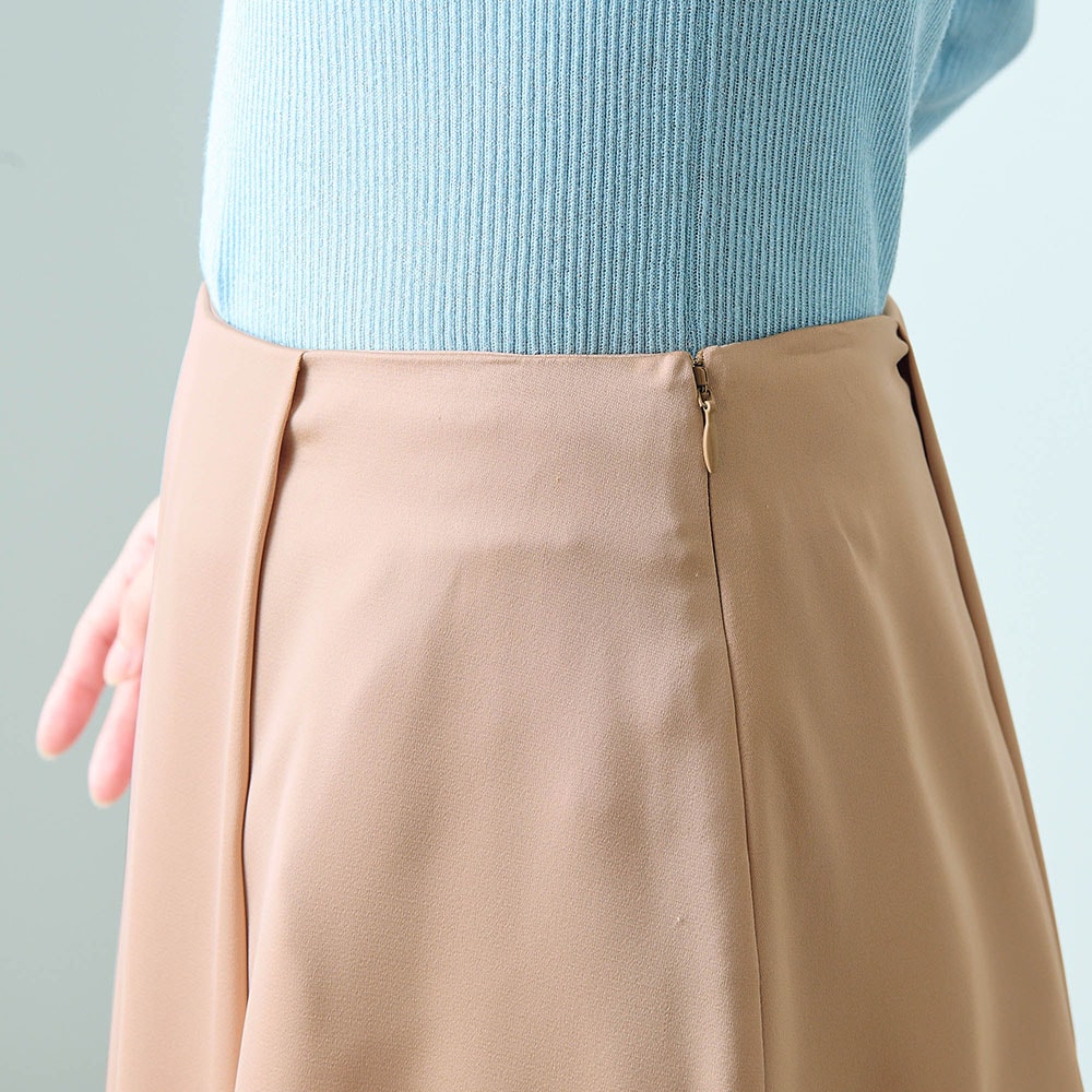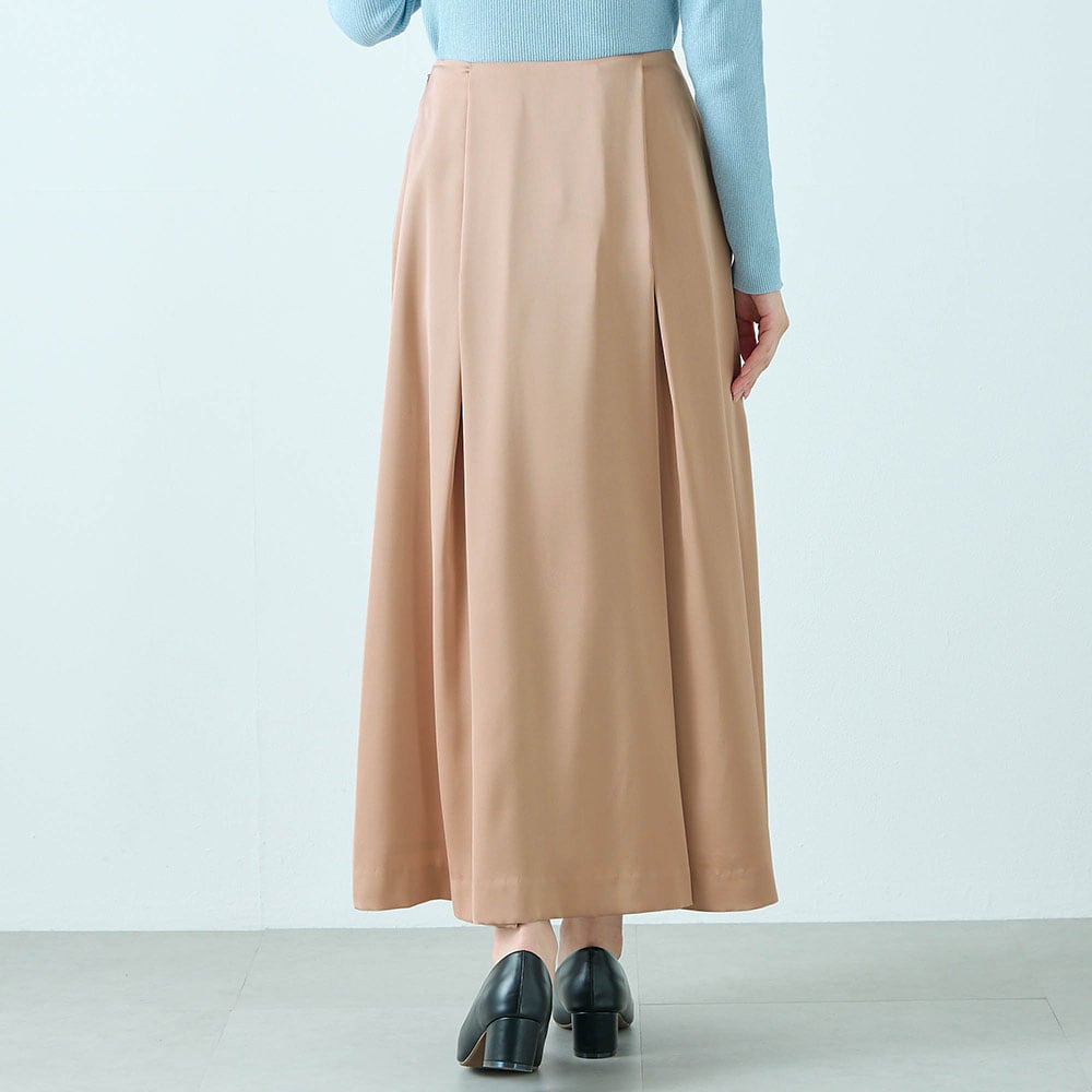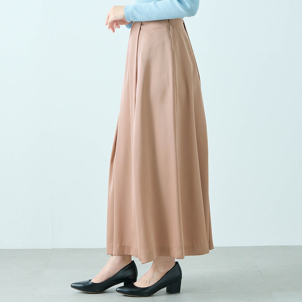 程よい光沢素材のタックスカート