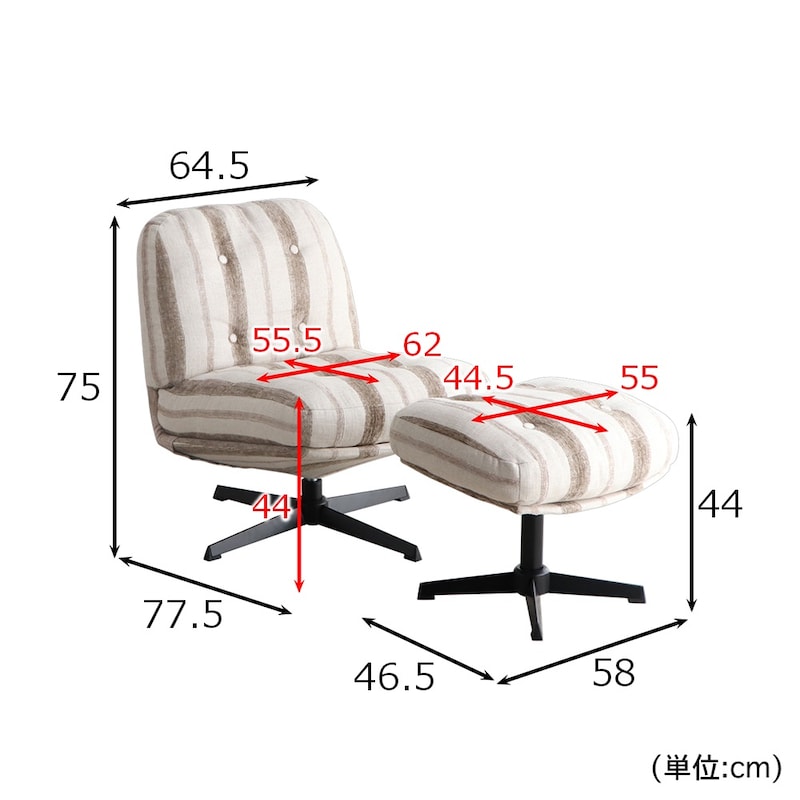 ■チェア/幅64.5、奥行77.5、高さ75(座面高44)cm