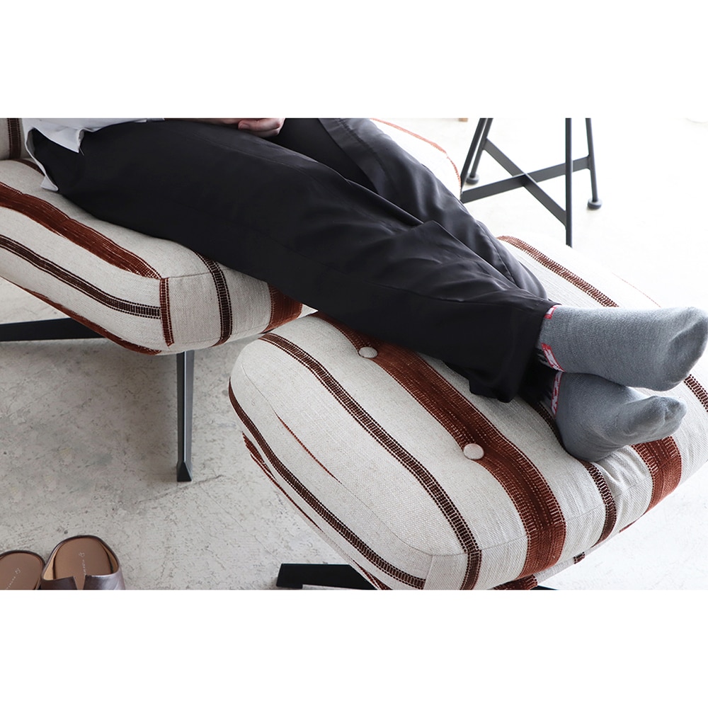 ●オットマンの座面は緩やかな角度付き。チェアと組み合わせると、膝が自然と上がり、背もたれに体重がかかってよりリラックスできる体勢に