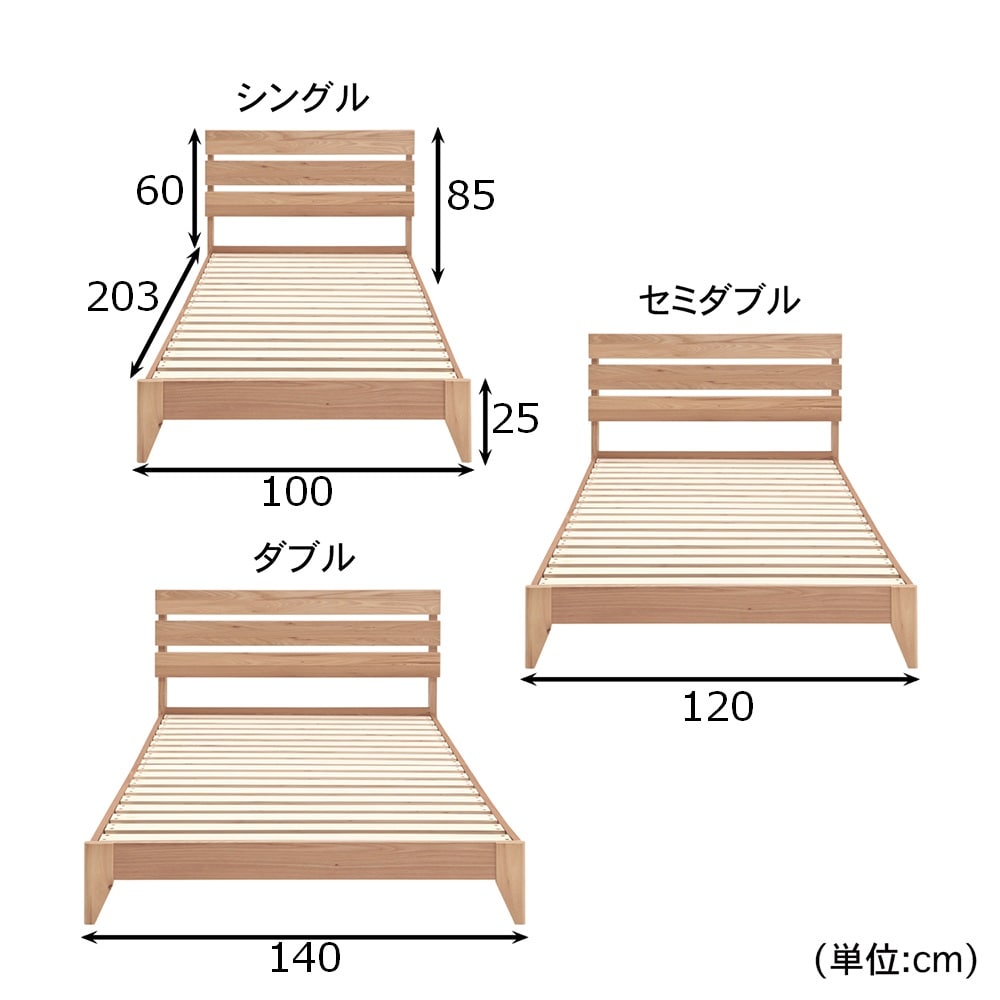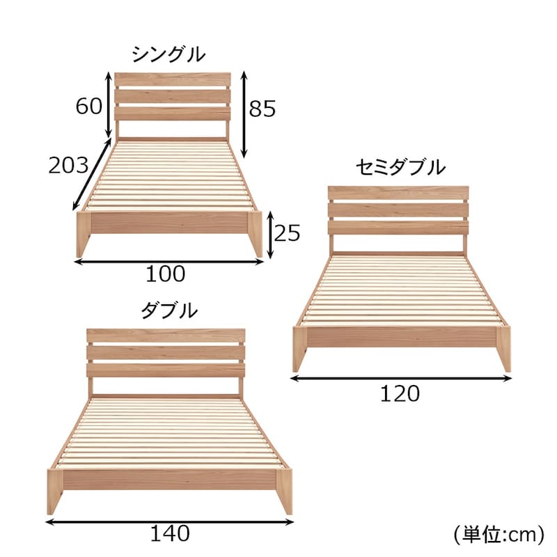 ■ダブル/幅140、奥行203、高さ85(床板高25)cm