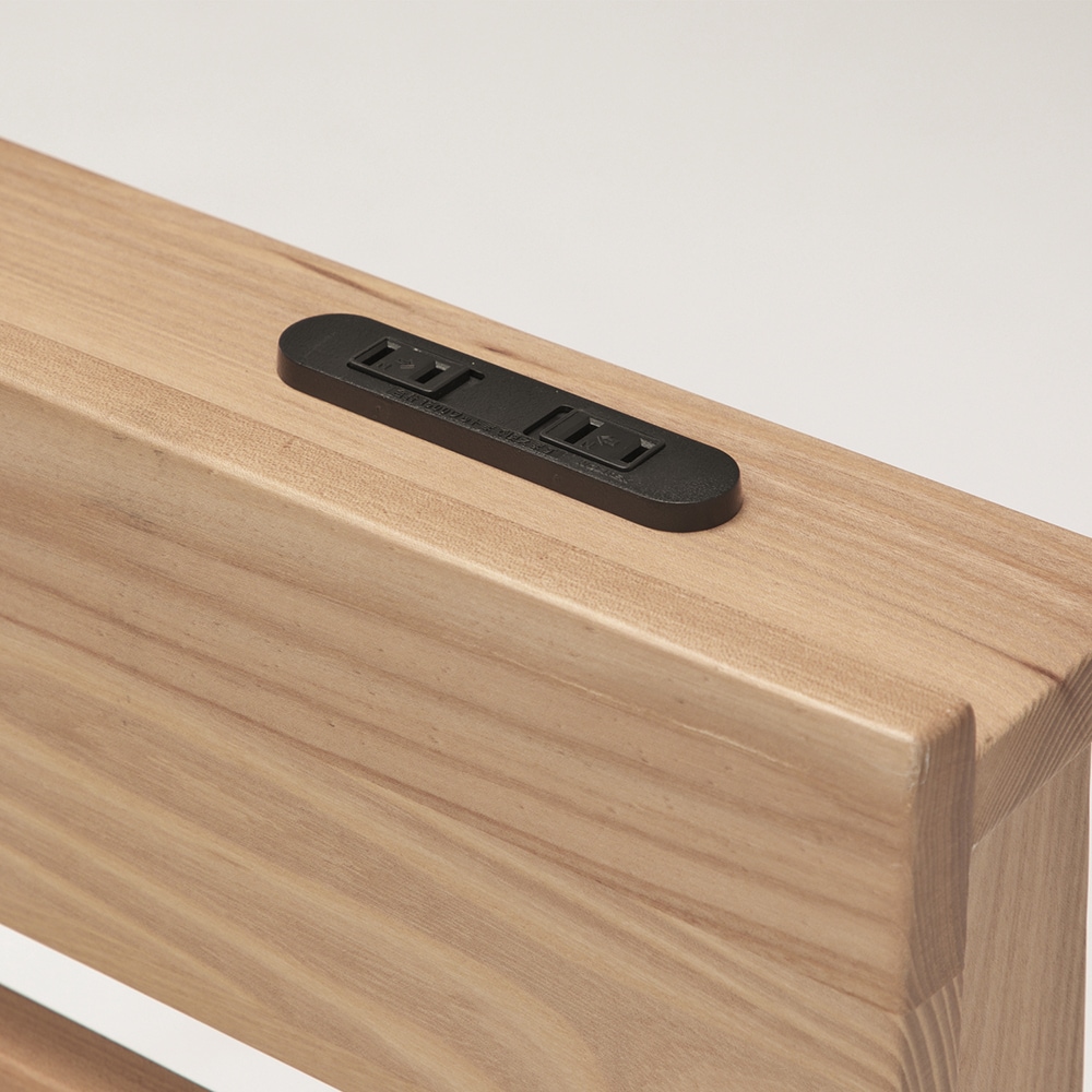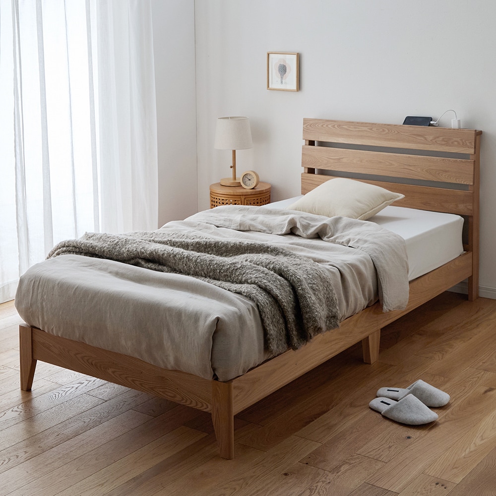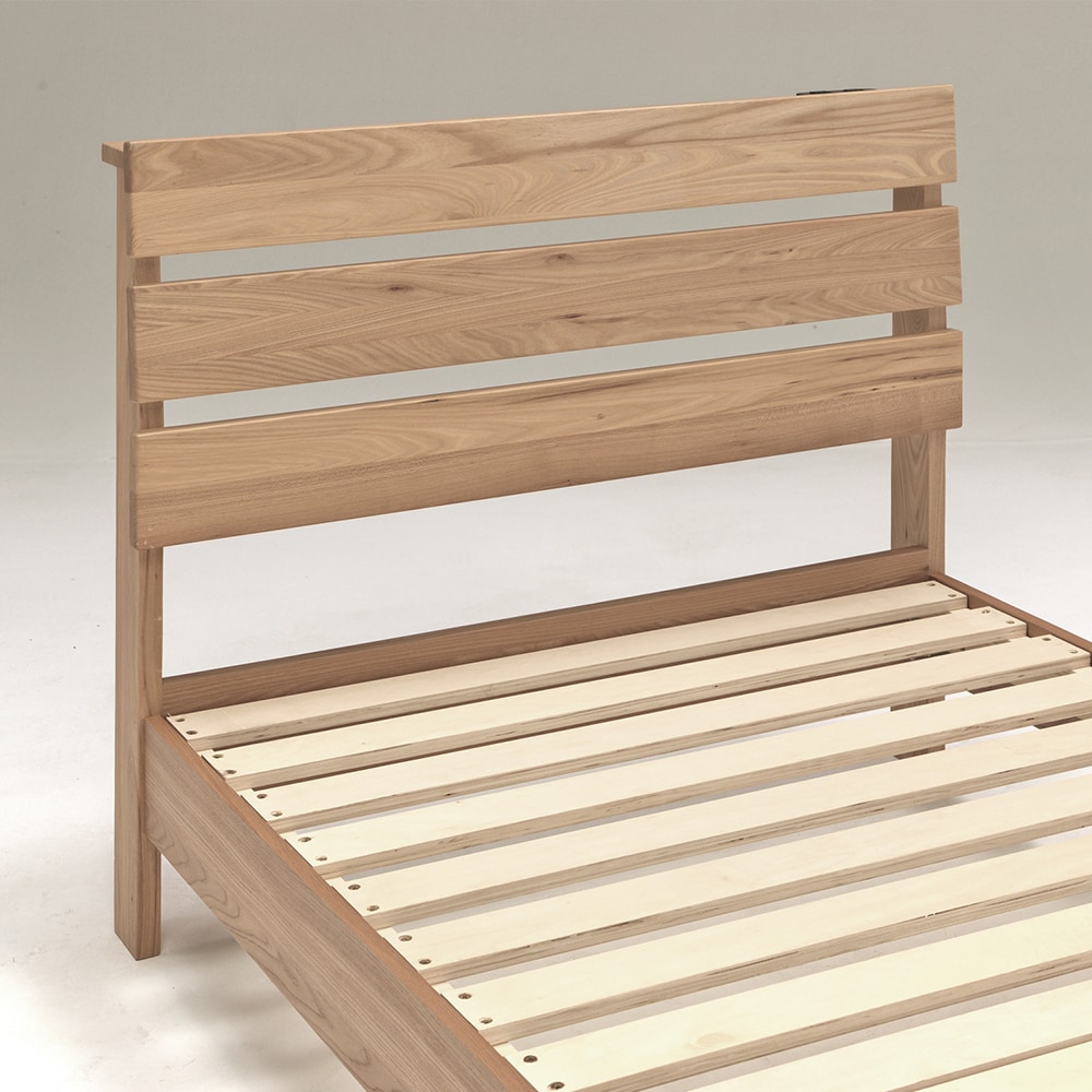 天然木ニレ無垢材の宮付きコンセント付きベッドフレーム
