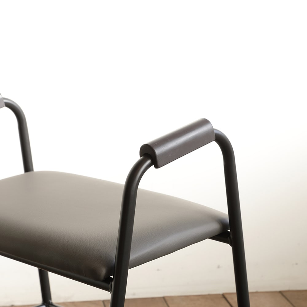 ●主材/座面張地:合成皮革(塩化ビニル)、座面中身:ウレタンフォーム、フレーム:スチール(エポキシ樹脂粉体塗装)、取っ手:天然木(パイン材<ラッカー塗装>)
