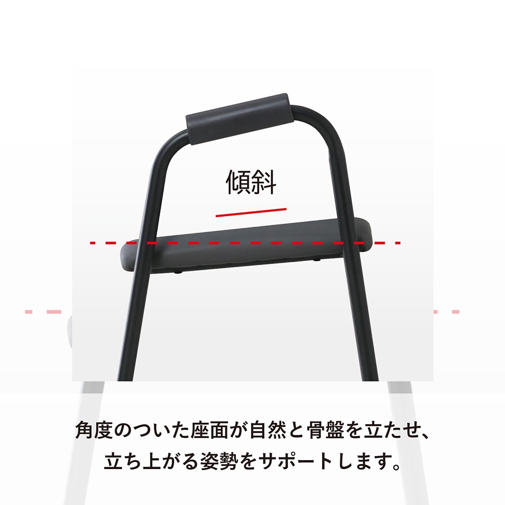 ●この傾斜座面が平らな座面に比べ自然と骨盤を立たせ、立ち上がる姿勢をサポートします