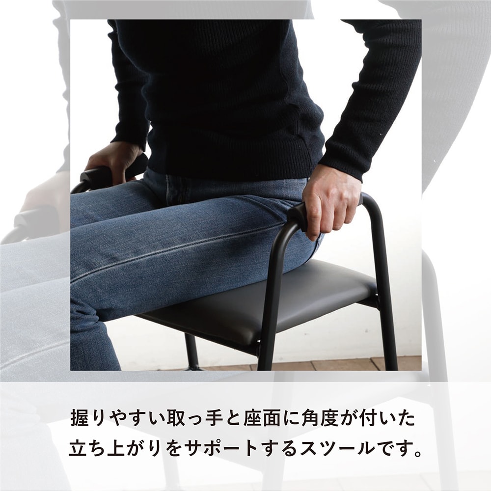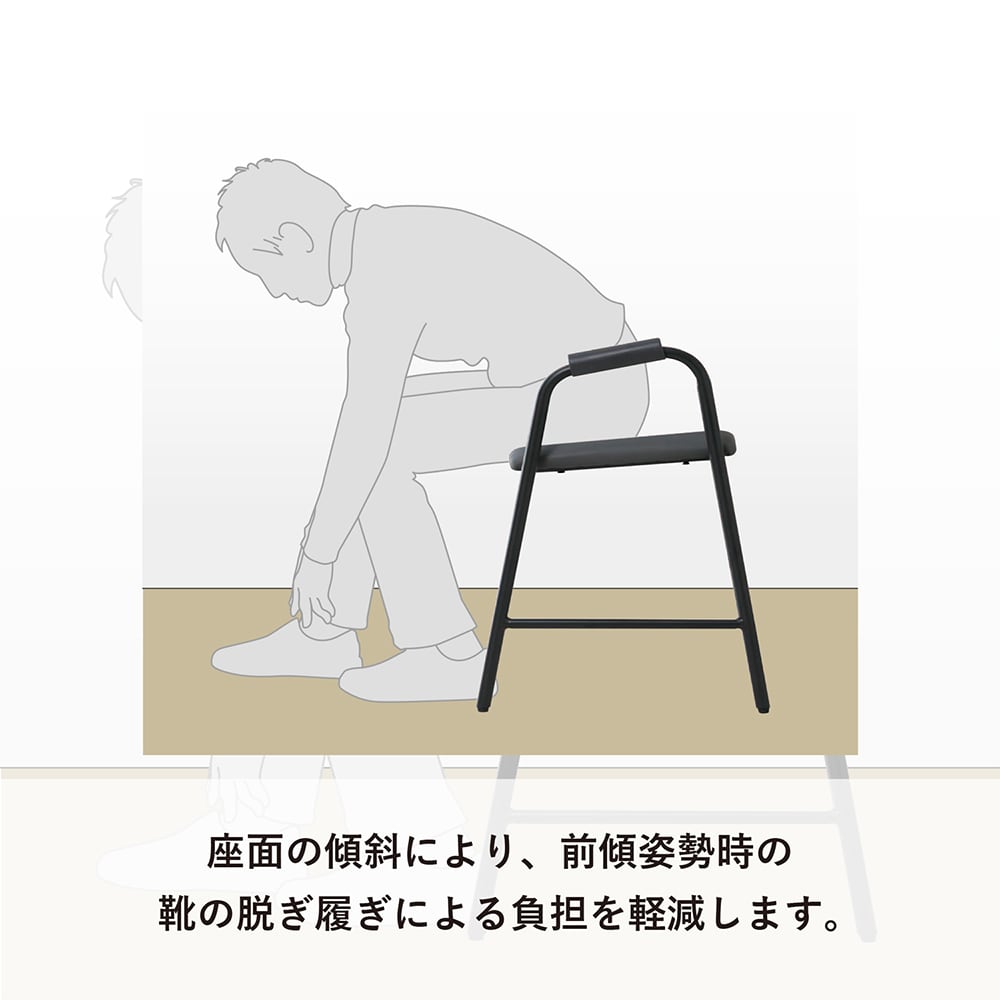 ●スツールの座面は立ち上がりや靴の脱ぎ履きを楽にする5°の角度で傾斜しており、身体が自然と起き上がる設計になっています