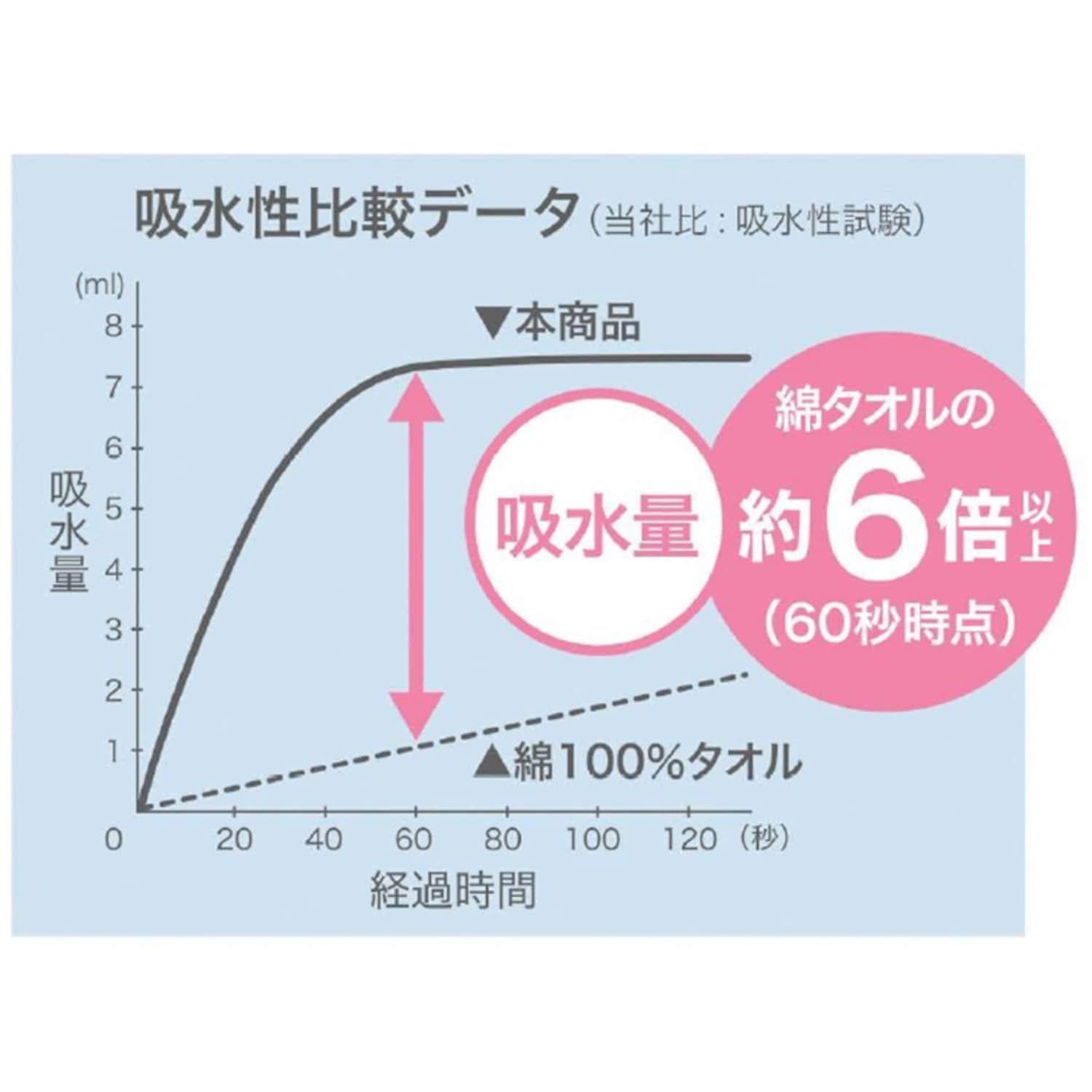 ●その給水量は60秒で同じ重さの綿のタオルの約6倍以上(メーカー調べ)