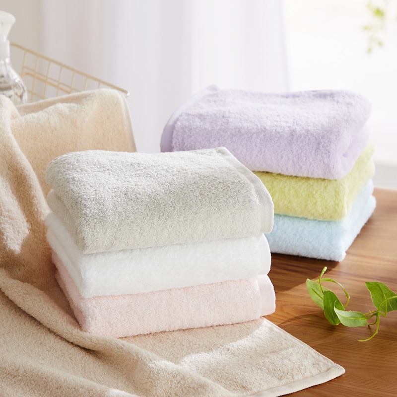 あまり期待せずに色と値段だけで選びましたが、予想外に良い商品でした。冬の時期、外干しすると柔軟剤を入れてもごわつくことが多いのですが、この商品は乾いても柔らかいです。クリーム色やミントグリーンがあれば家族全員分揃えたいです。