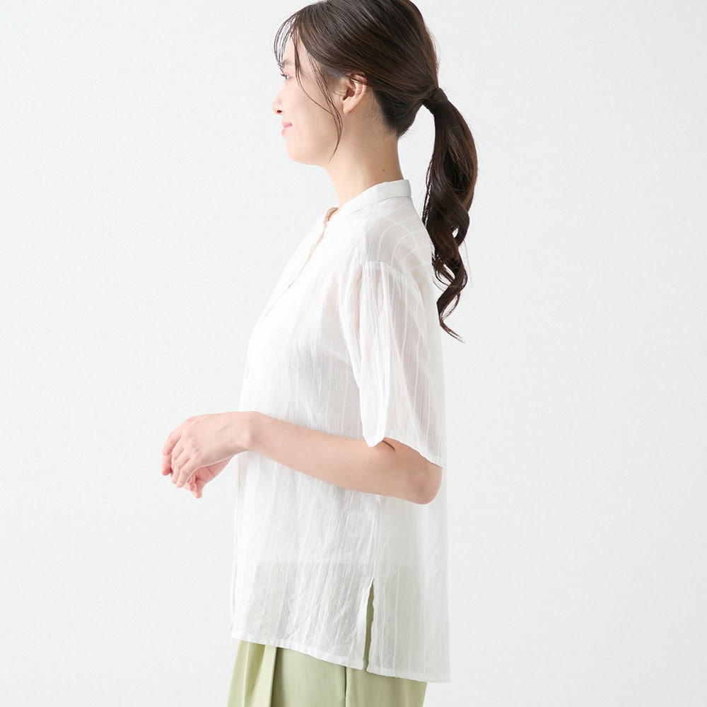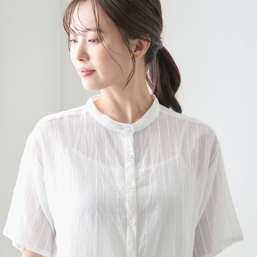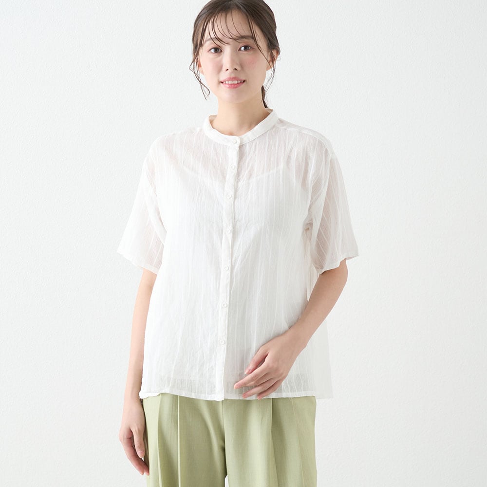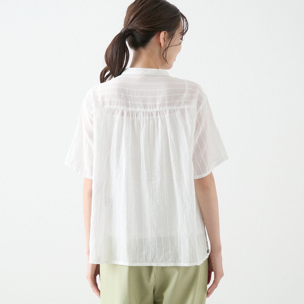 独特の風合いや透け感が上品なドビー織りの半袖ブラウス