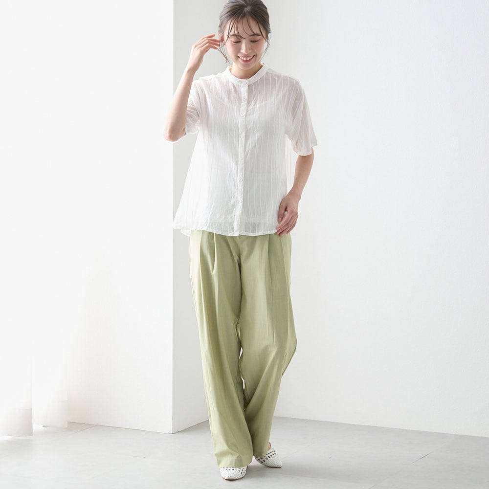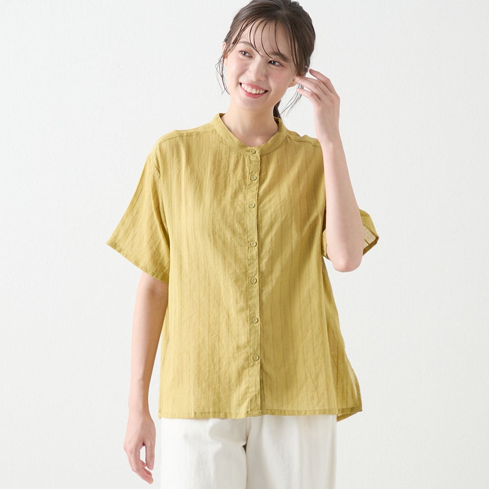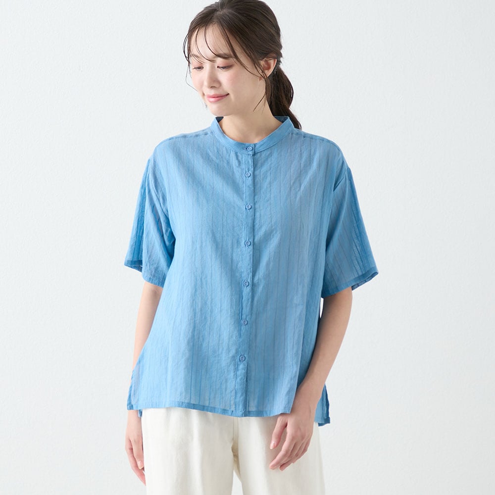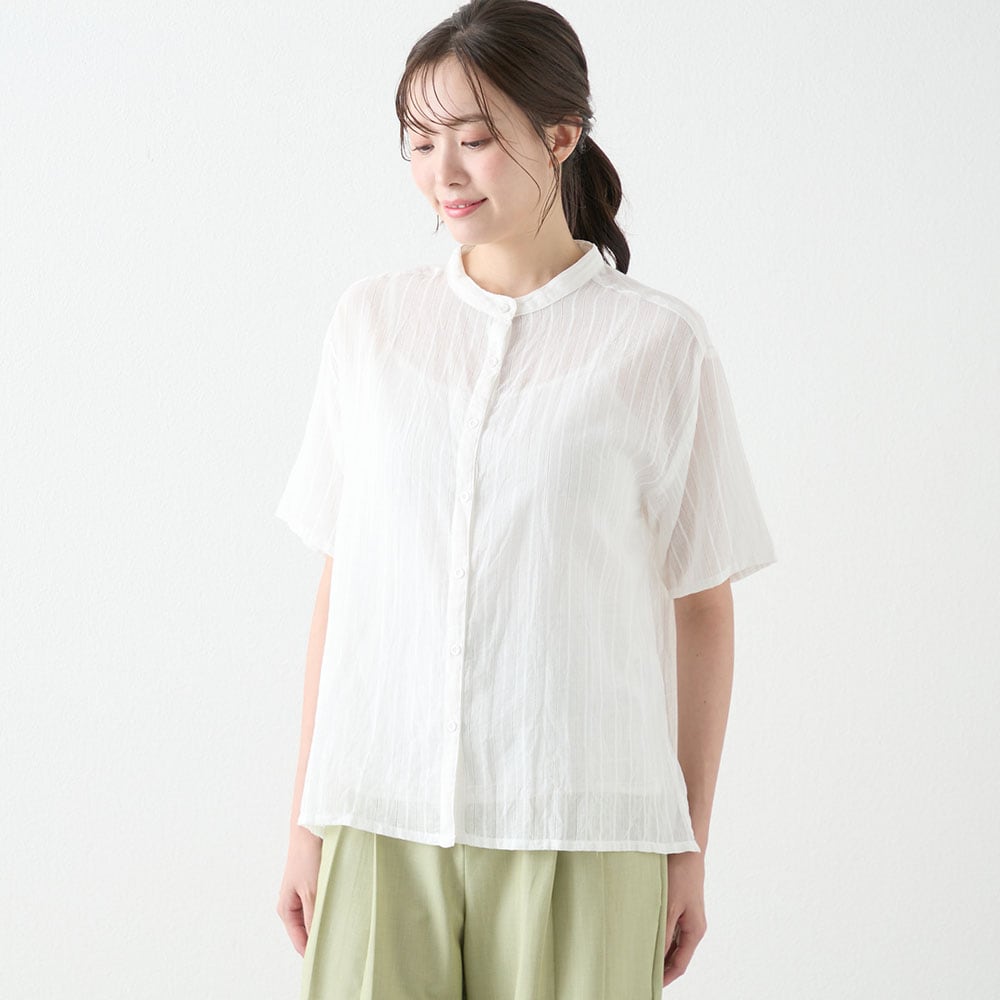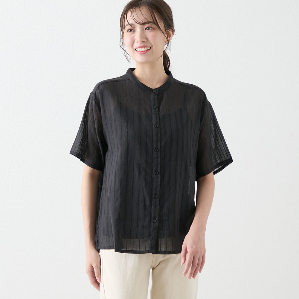 独特の風合いや透け感が上品なドビー織りの半袖ブラウス