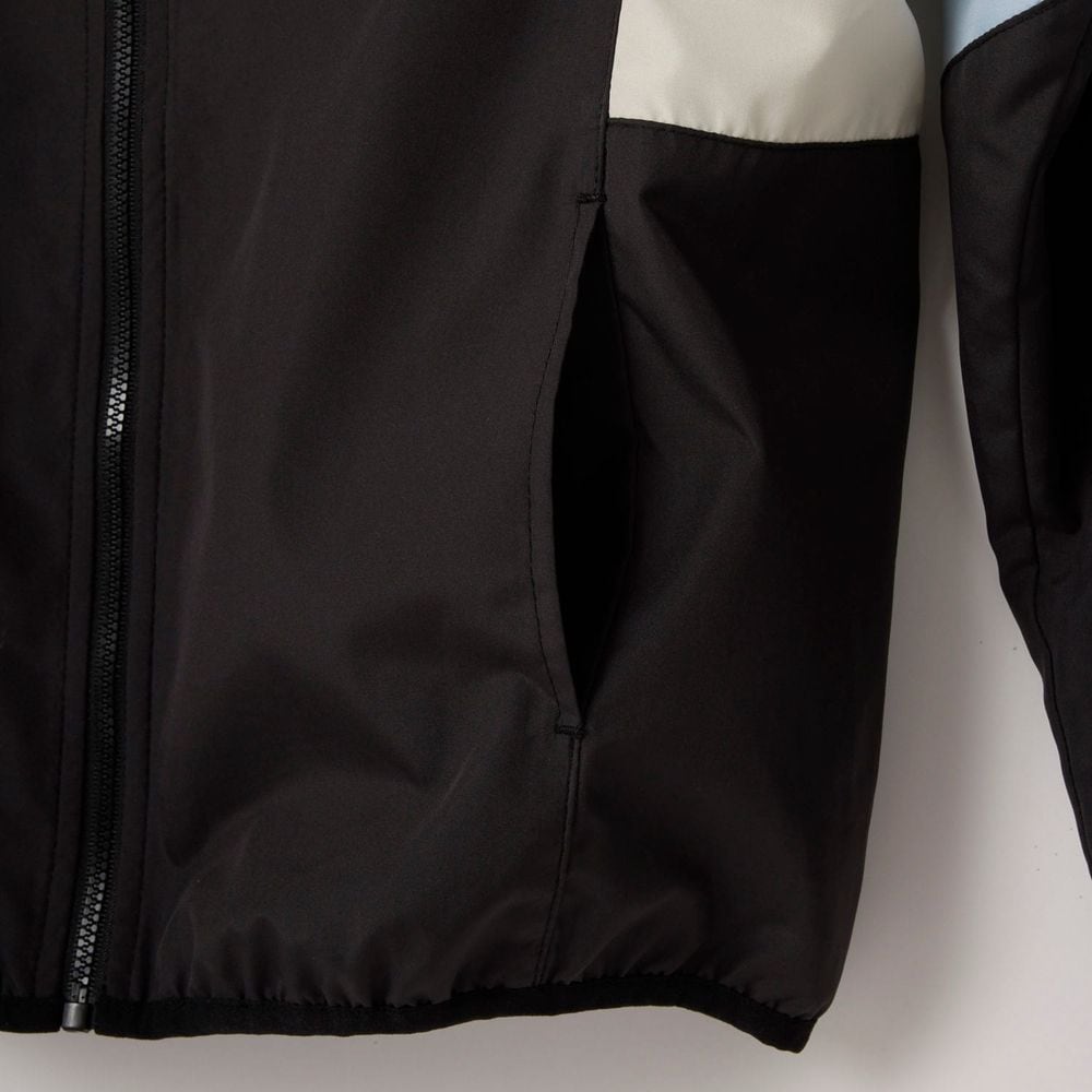 ・左胸のブランドロゴと配色切り替えデザインがポイント