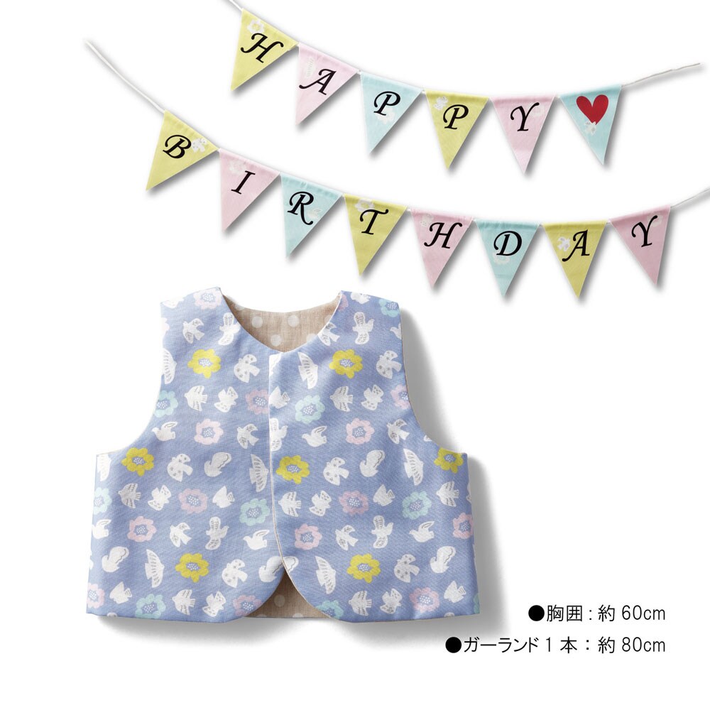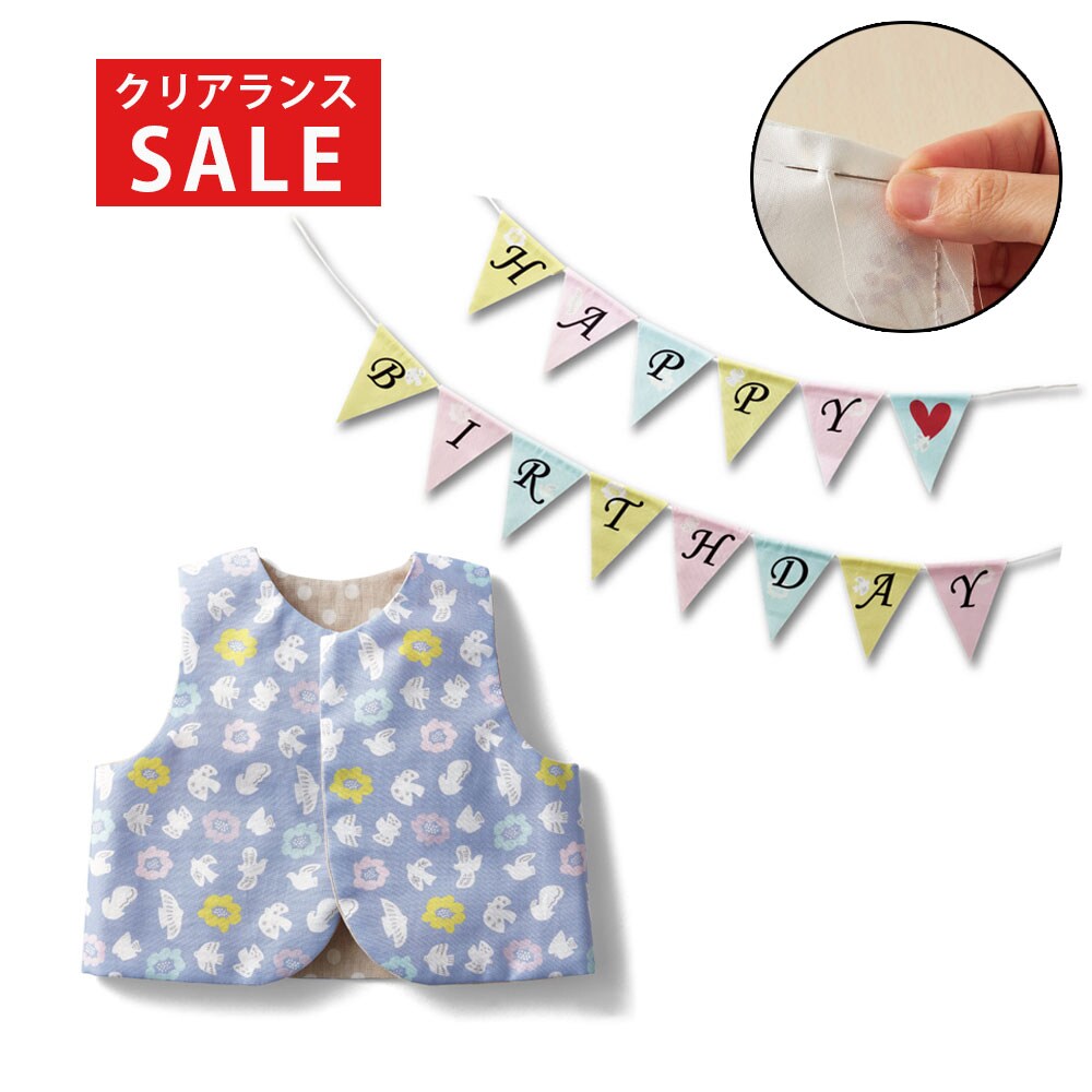 【クリアランス】【1回のみお届け】[ベスト&ガーランド] 印刷済み!手縫いで簡単ベビー小物手作りキット