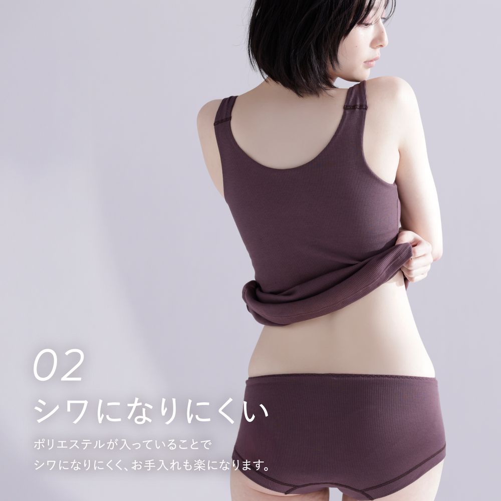 ポリエステルが入ることで、乾きやすく、ムレの原因をおさえます。