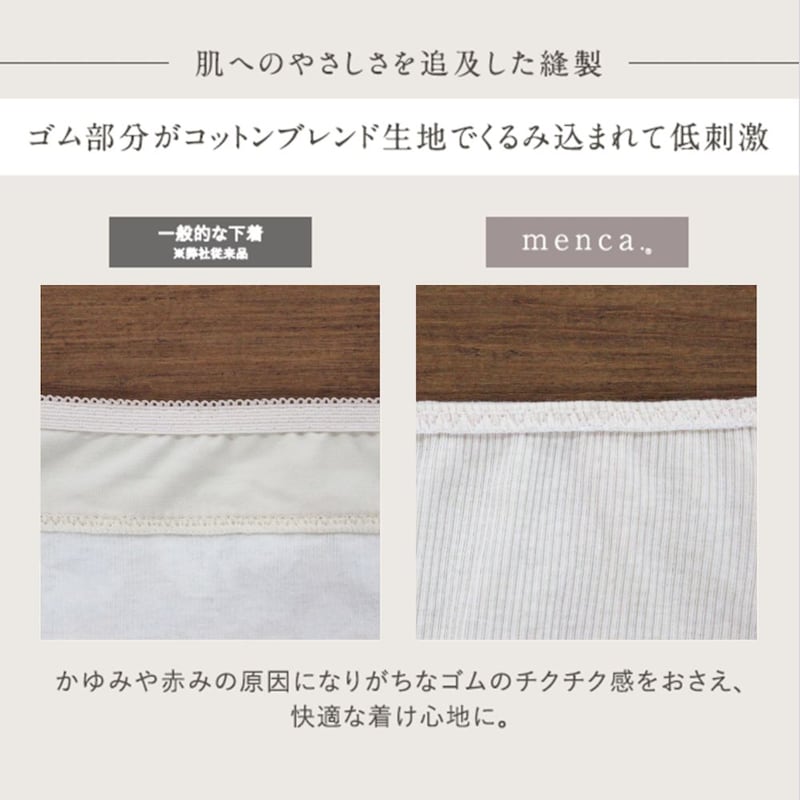 ・ゴム部分はコットンブレンド生地でくるみ込まれているので低刺激
