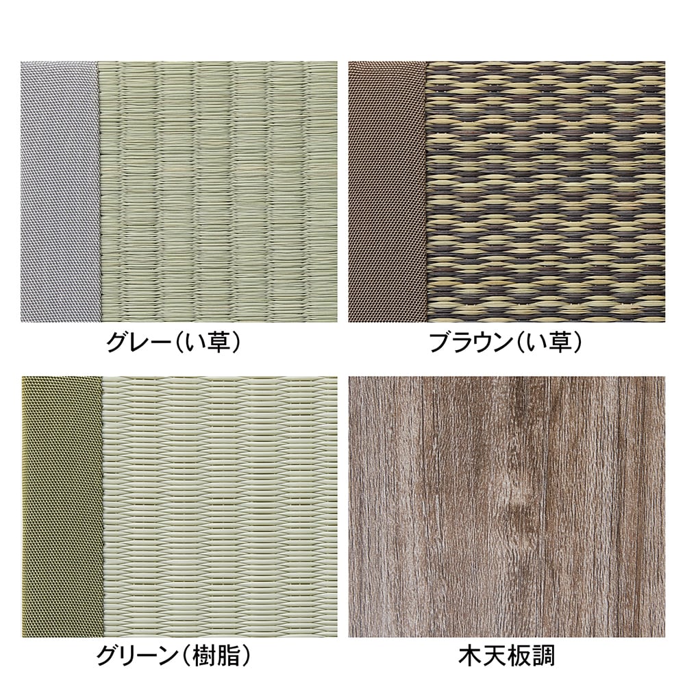 ●主材/本体:スチール(エポキシ樹脂粉体塗装)、畳天板表面(グレー・ブラウン:い草、グリーン:ポリプロピレン)、 木天板表面:合成樹脂化粧パーティクルボード(メラミン)、天板芯材:合成樹脂化粧パーティクルボード(メラミン)・発泡ポリエチレンシート
