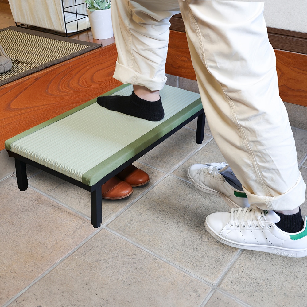 懐かしい「畳」の踏み心地の日本製の畳天板・木目調天板から選べる玄関ステップ