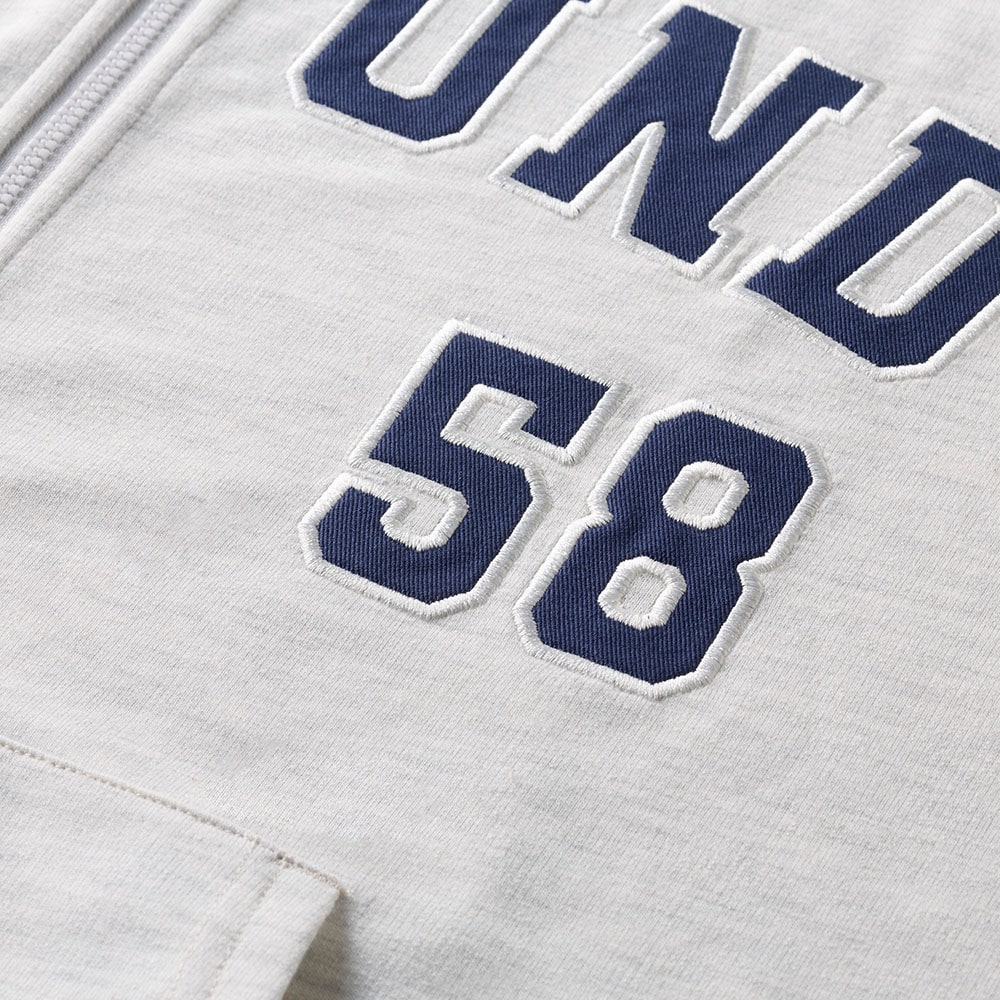●前:中央ファスナー、カンガルーポケット、アップリケ刺繍