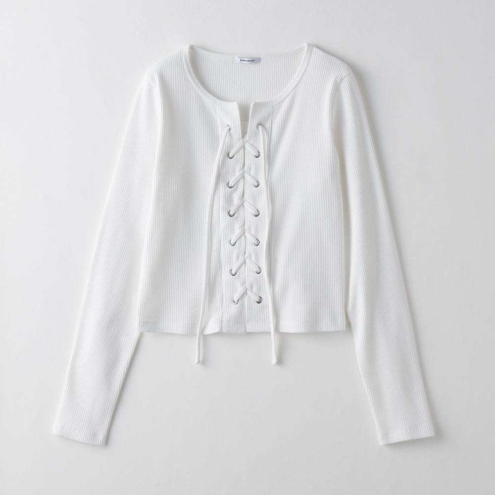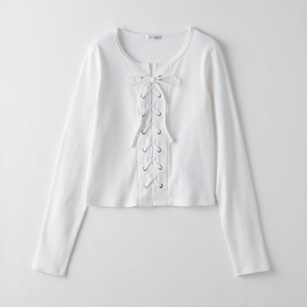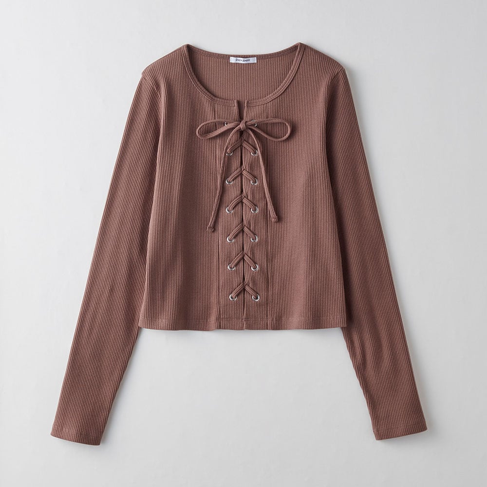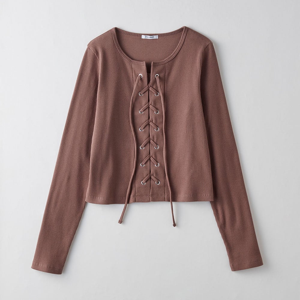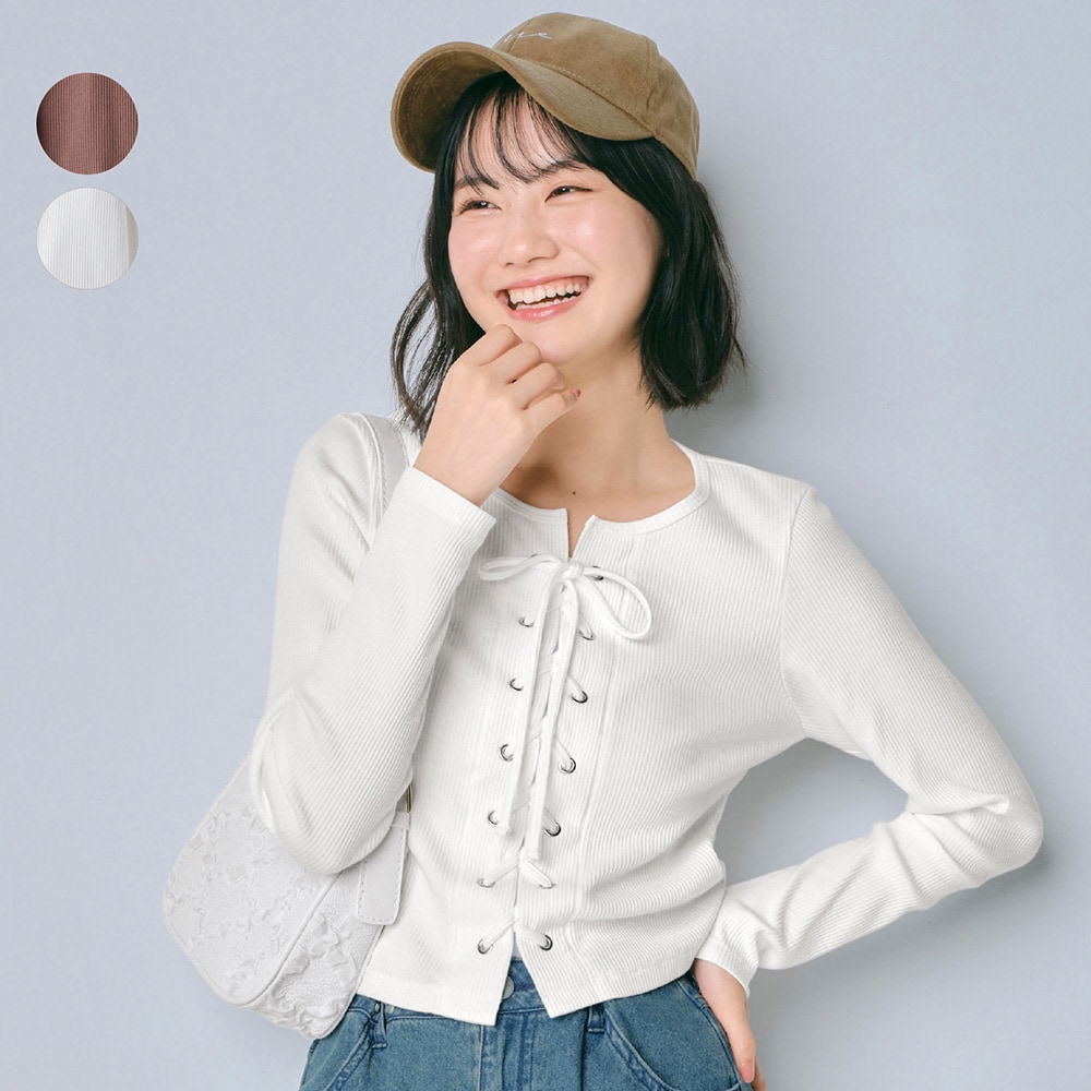 レースアップ綿混リブプルオーバー 【子供服 長袖】