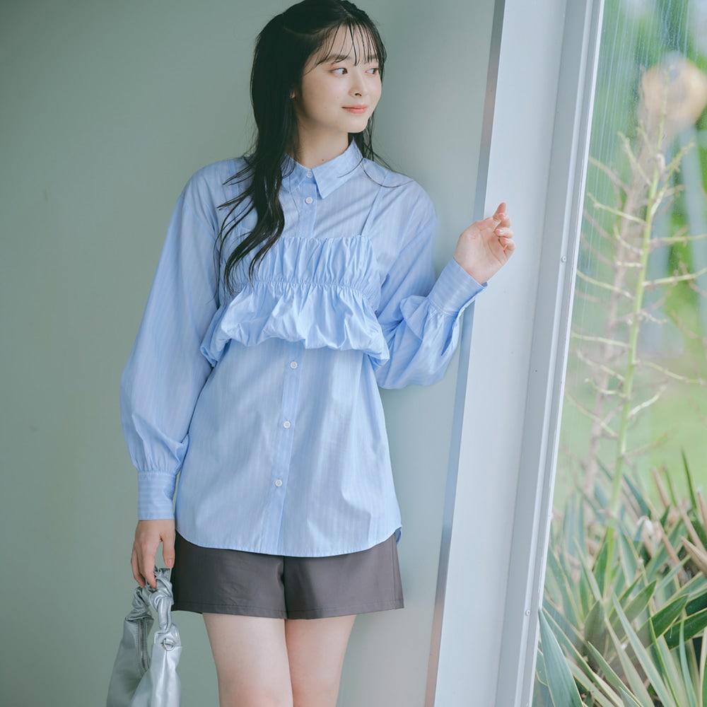 ぽわんと可愛いビスチェ×マニッシュなシャツのセット