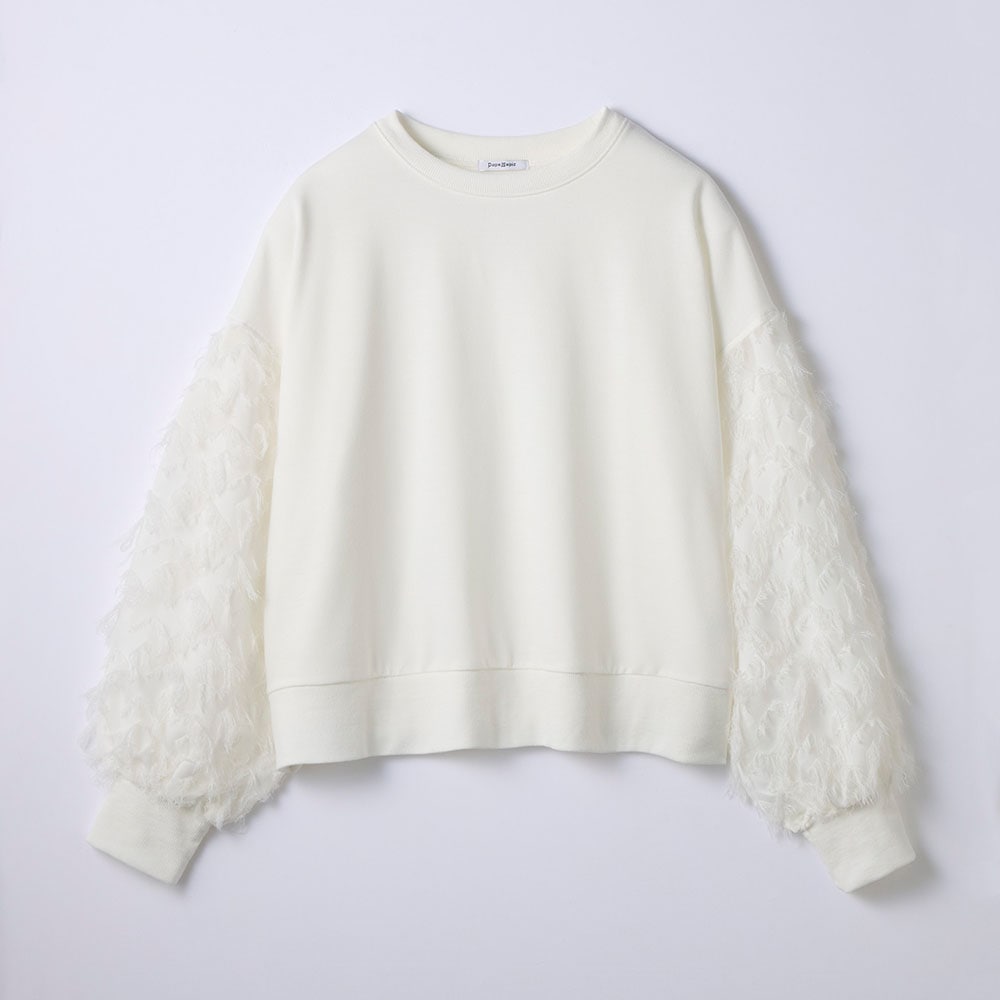 ●<カットソー>ポリエステル65%、綿35%(ミニ裏毛)、リブ部分:<カットソー>ポリエステル60%、綿35%、ポリウレタン5%(リブ)、袖部分:<織物>ポリエステル100%(フリンジ変わり織)