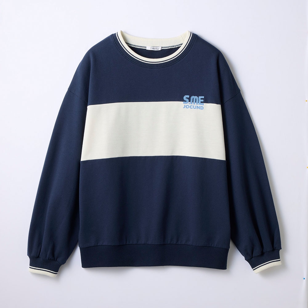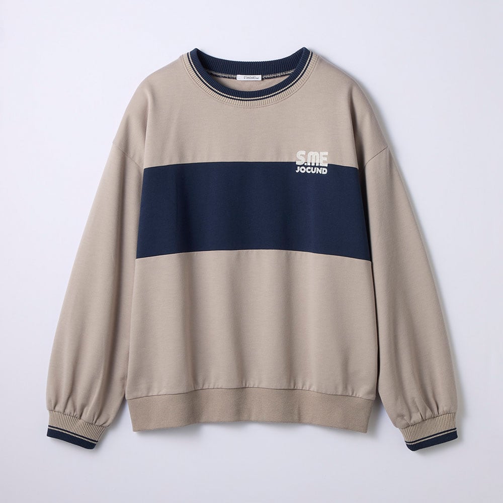 ラインリブ配色切替え綿ミニ裏毛プルオーバー 【子供服 長袖】