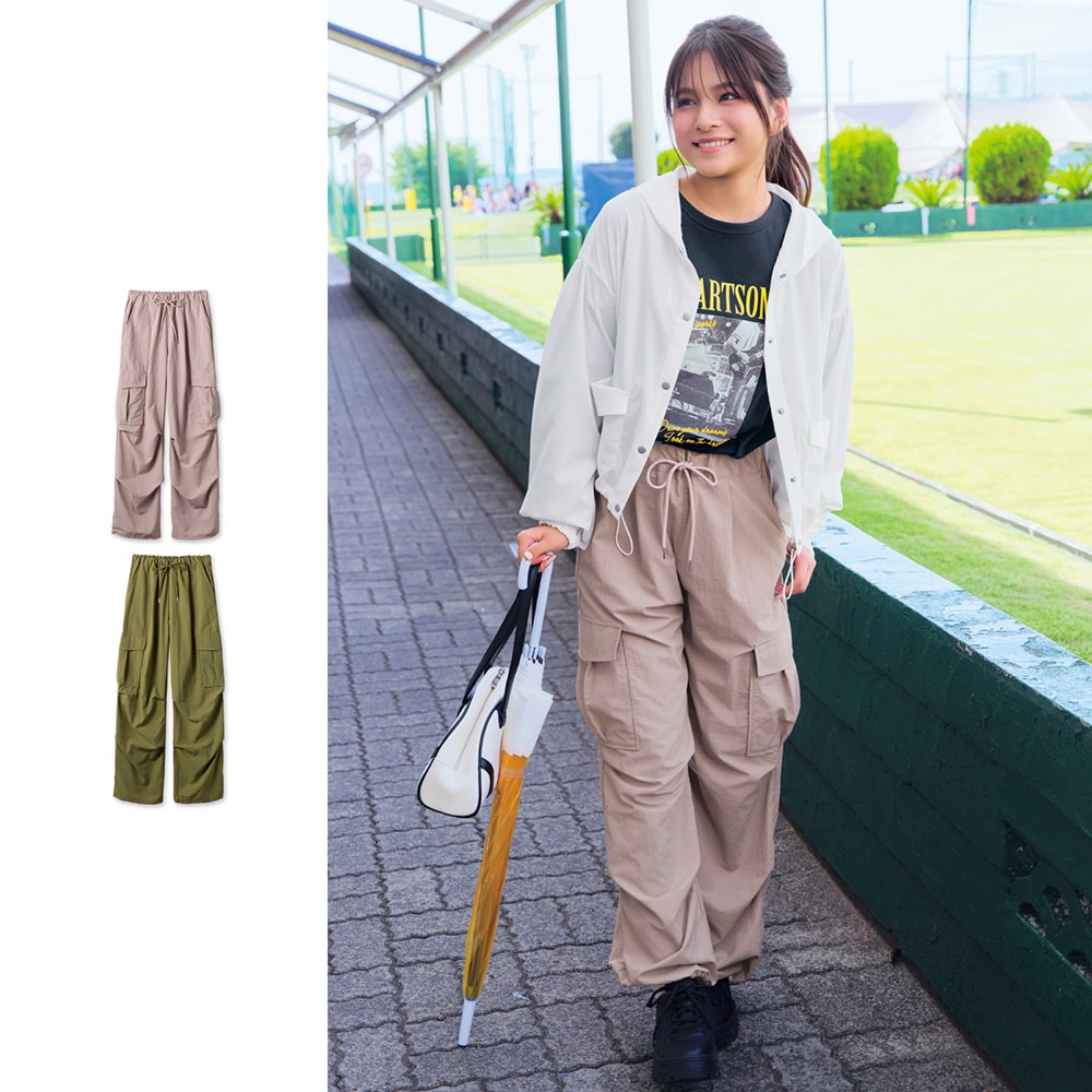 ナイロン素材ですっきり見えるカーゴパンツ