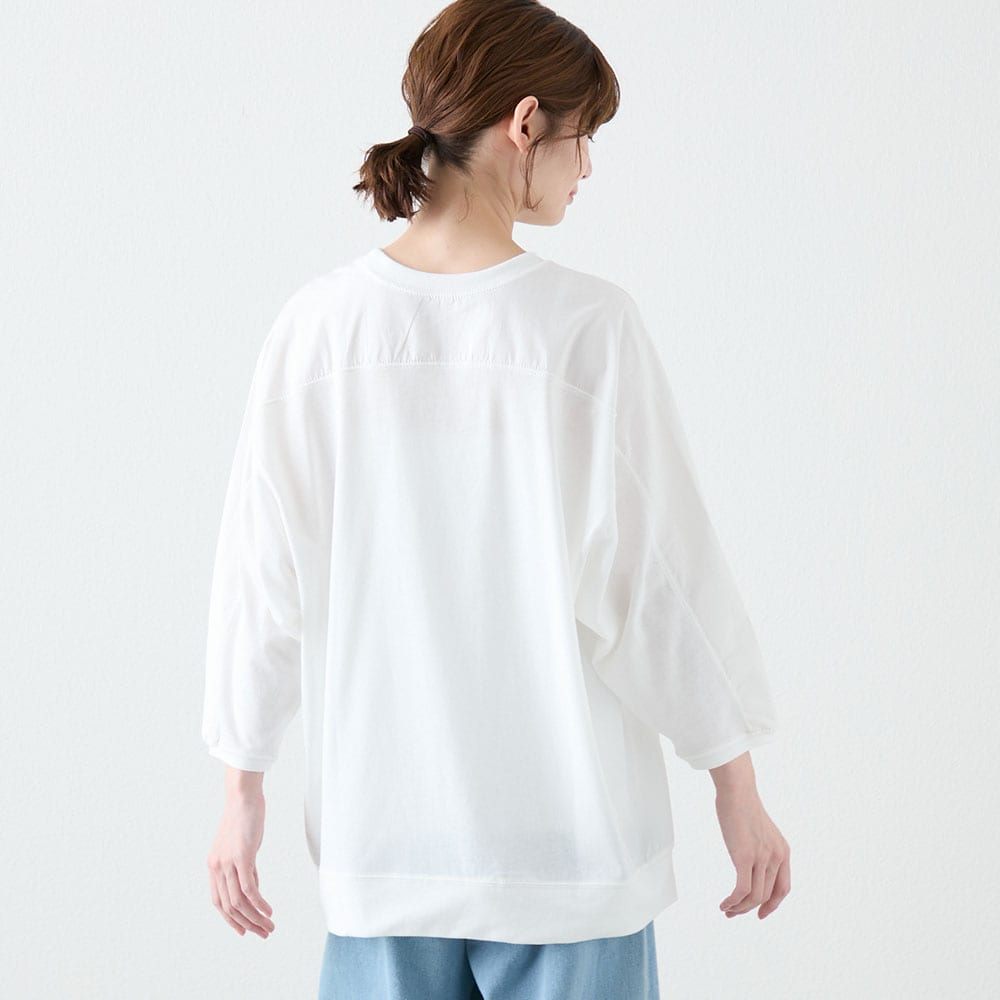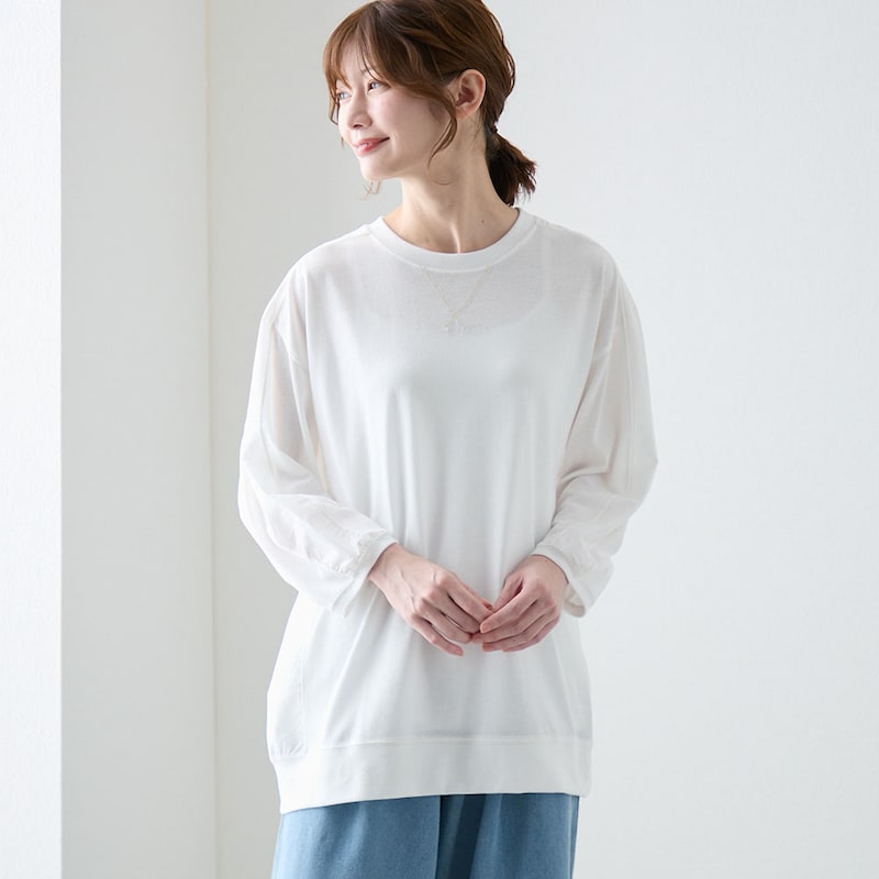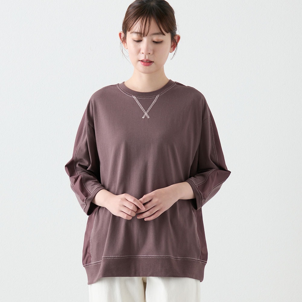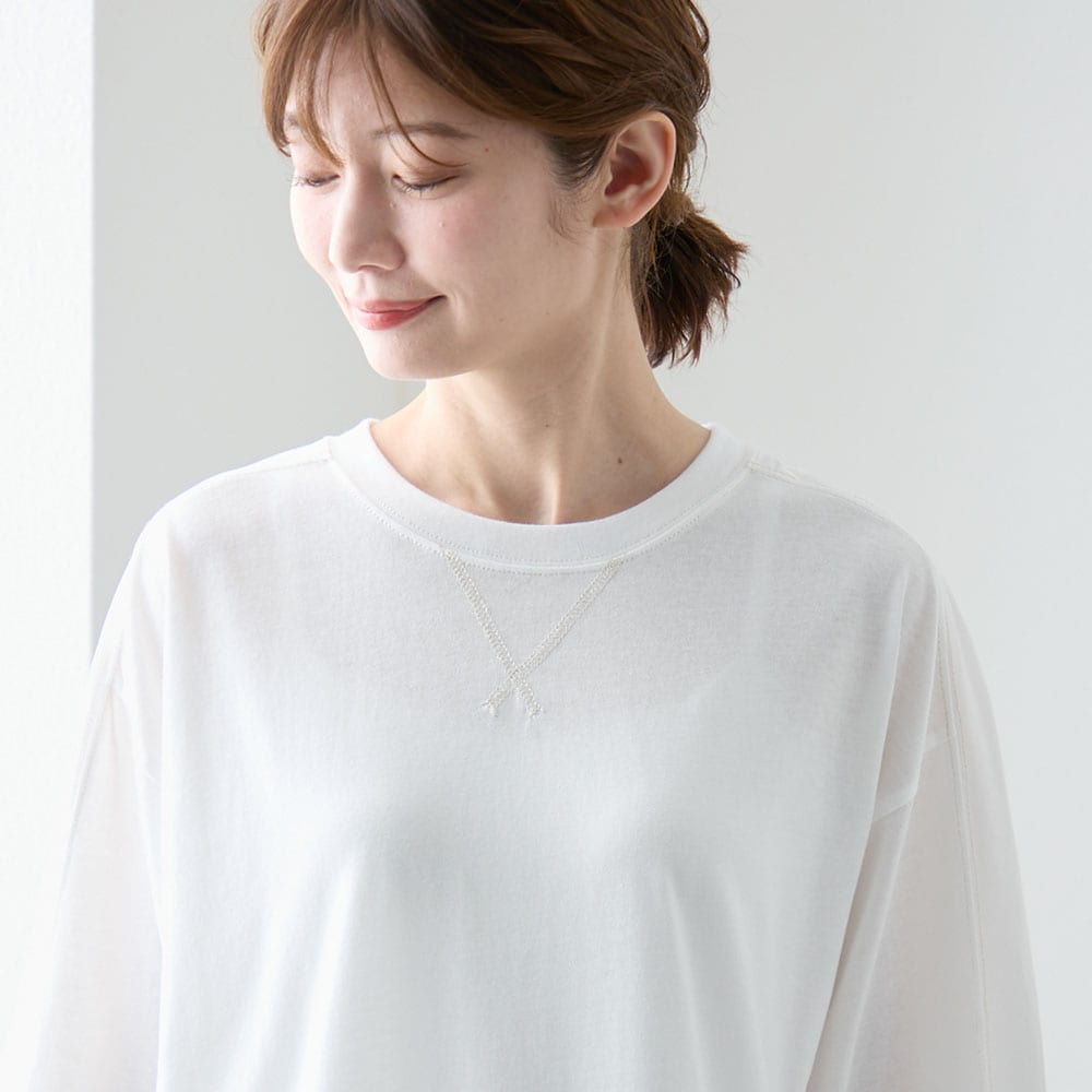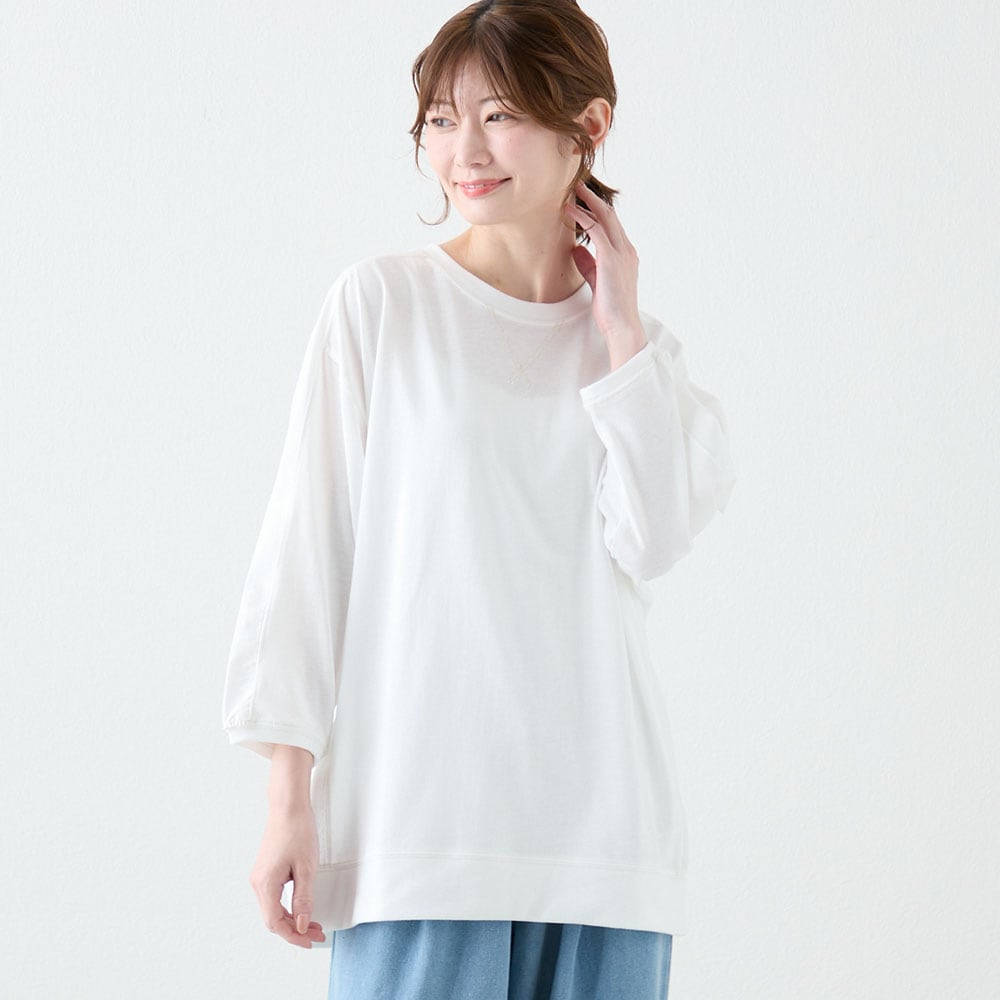 ラメ入りのステッチが目を引く、こなれ感漂うゆったりプルオーバー