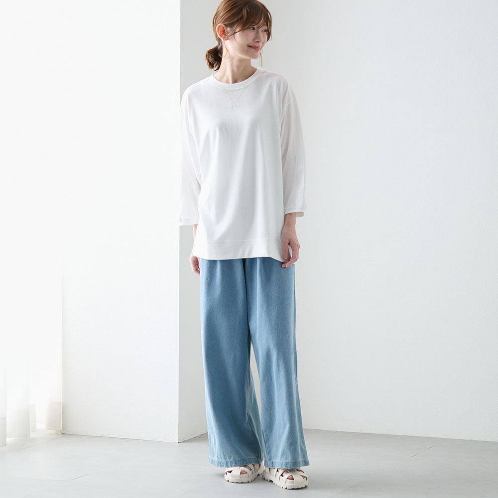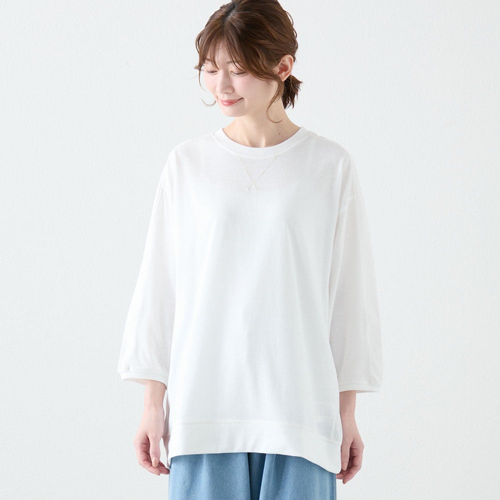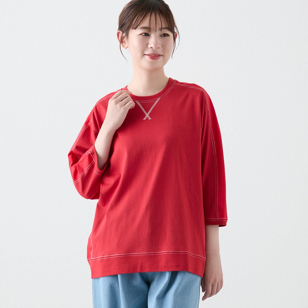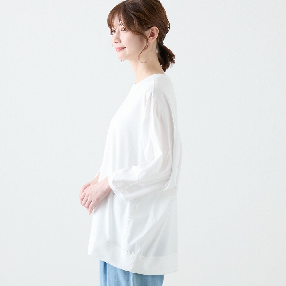 ラメ入りのステッチが目を引く、こなれ感漂うゆったりプルオーバー