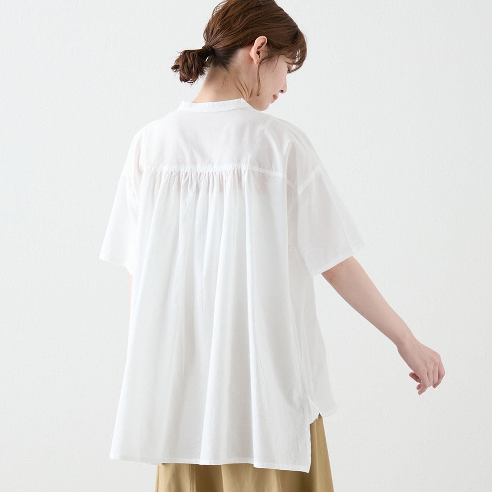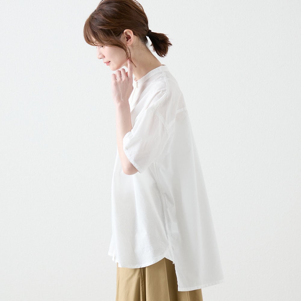 体型カバーにもぴったり!ゆったりシルエットの5分袖ブラウス