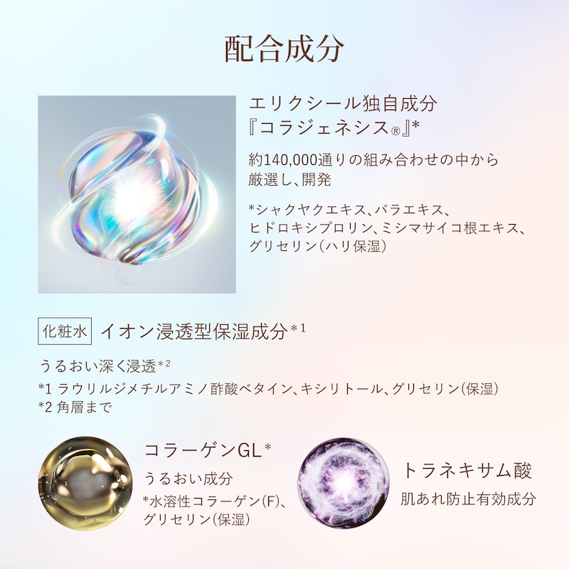 初のエリクシールの化粧水です。乾燥肌の私で、とろみのある感じがいいです。つや玉肌を目指してお手入れしたいと思います。詰め替え用があるのも嬉しいです。