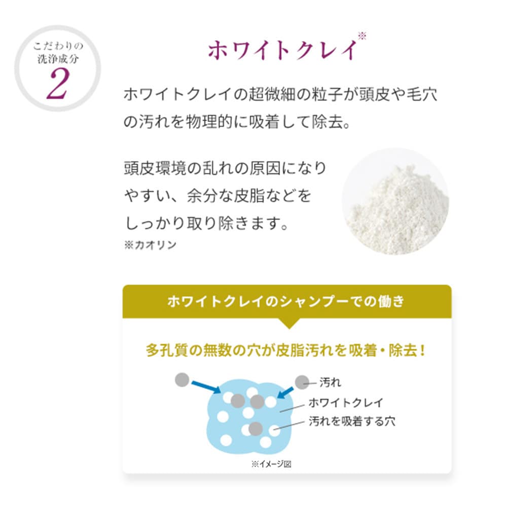超微粒子の海泥(※1)とホワイトクレイ(※2)が頭皮や毛穴の汚れを吸着し、皮脂まですっきり洗い上げます。