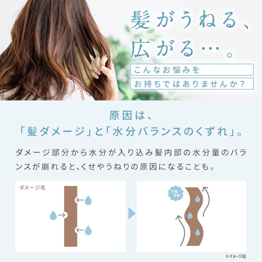 髪のうねりや広がりは、ダメージと水分バランスの崩れが原因。