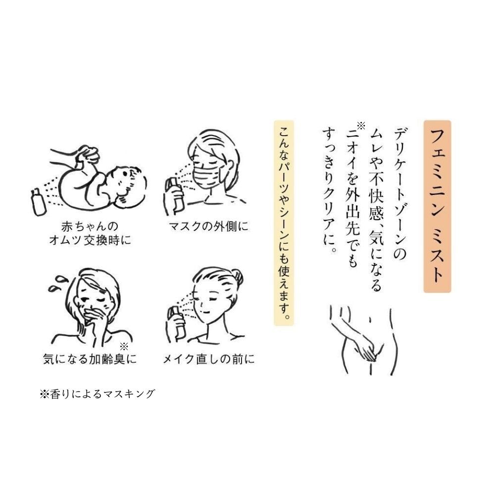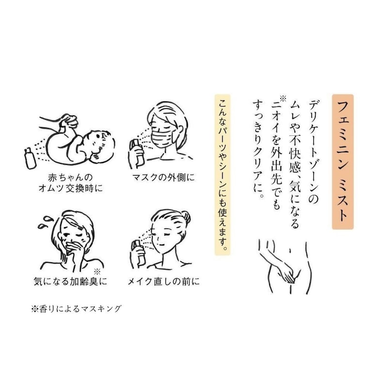 生理中やお手洗いの後など、気になった時に肌に直接シュッとスプレーすれば、不快感をクリアにしながら保湿成分が肌にうるおいを与えます。