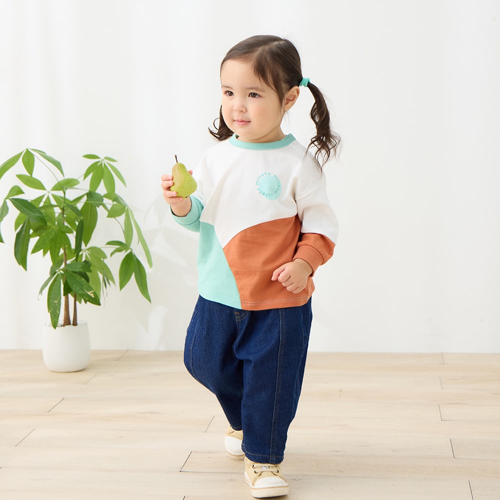 配色切替えデザイン長袖Tシャツ 【ベビー服】