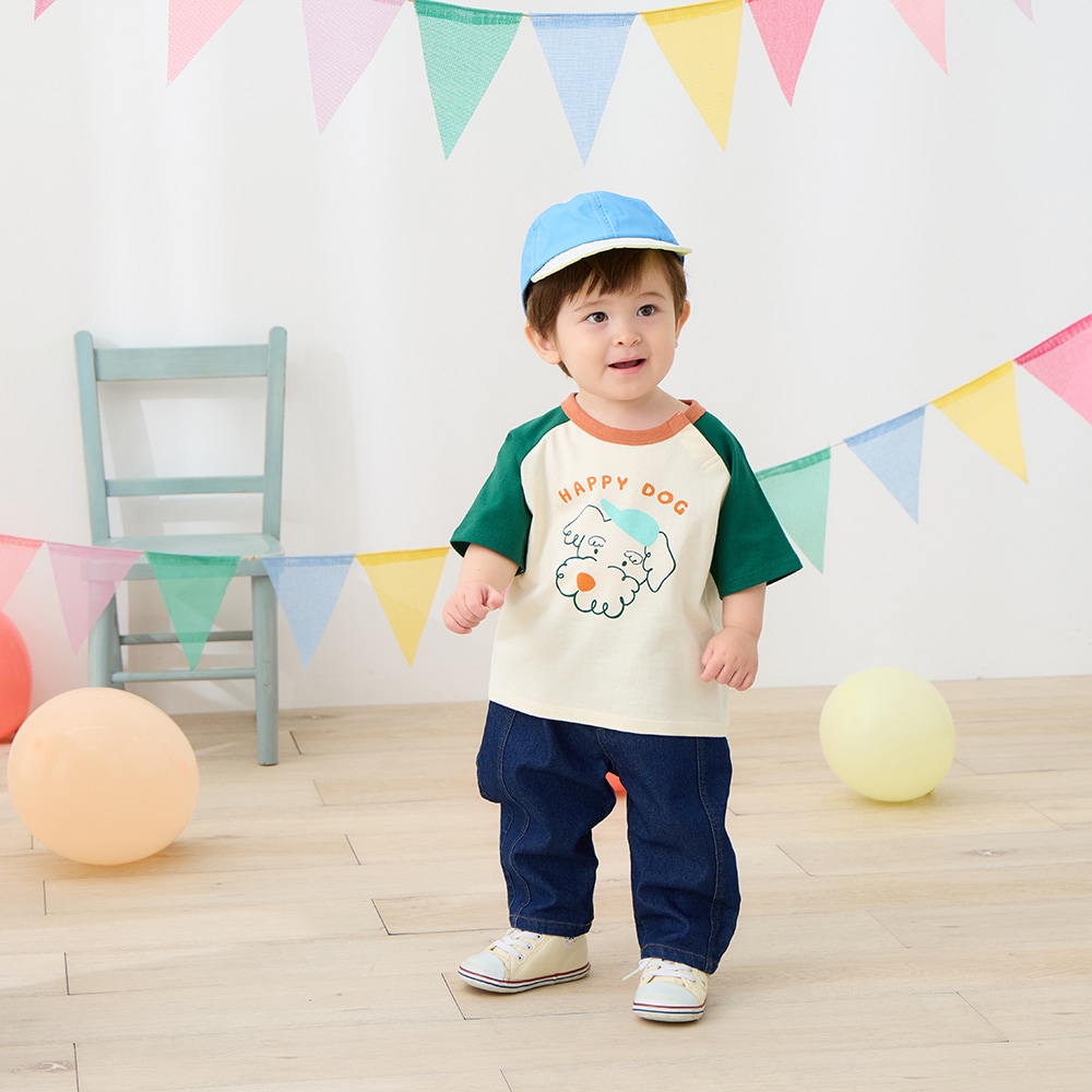 • アイボリー×グリーン/モデル身長79cm・80サイズ着用・体重10.5kg