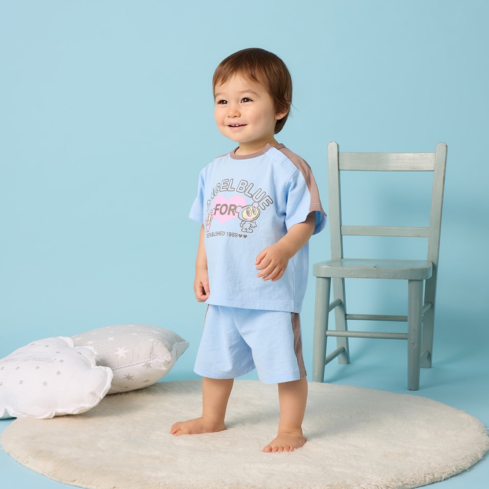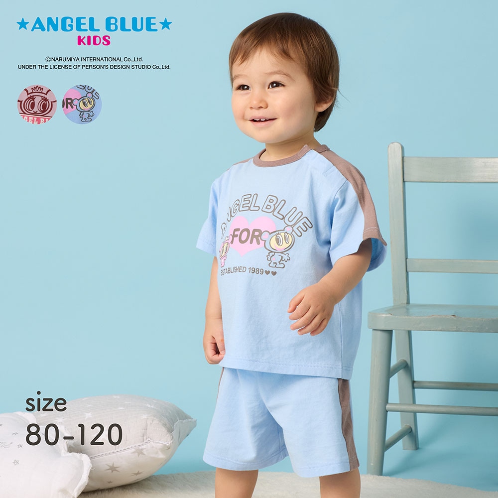 エンジェルブルー ライン切替え半袖パジャマ 【ベビーパジャマ】