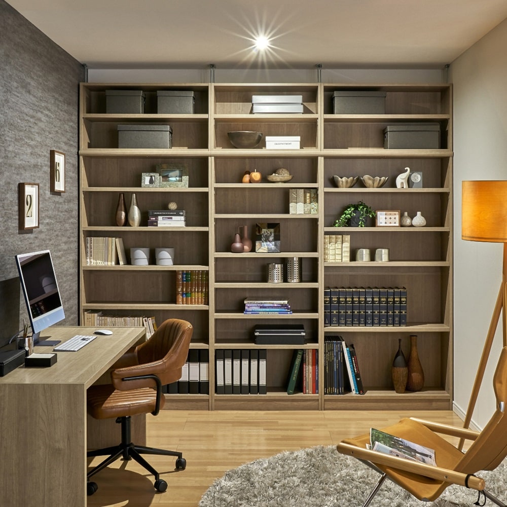 ●横幅15cm~70cmまで5cmピッチの12タイプ、奥行き5タイプ、高さは10タイプよりオーダーできる本棚・ラックです