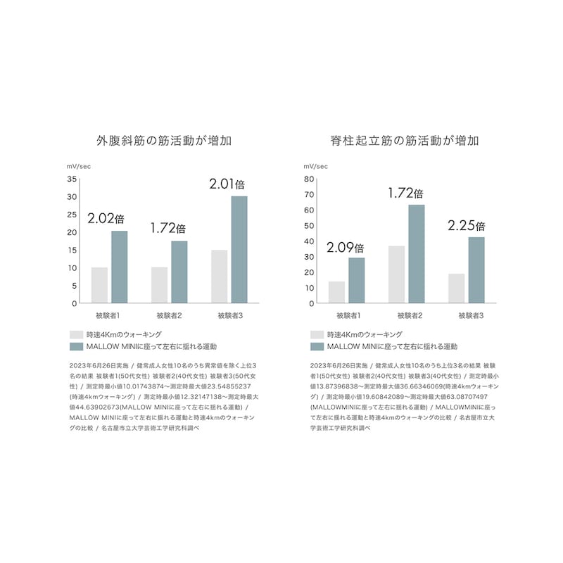 ●これまでのバランスボールにはない形状が適度な安定感をもつ自立性、体幹を刺激するバランス性を実現しました。
