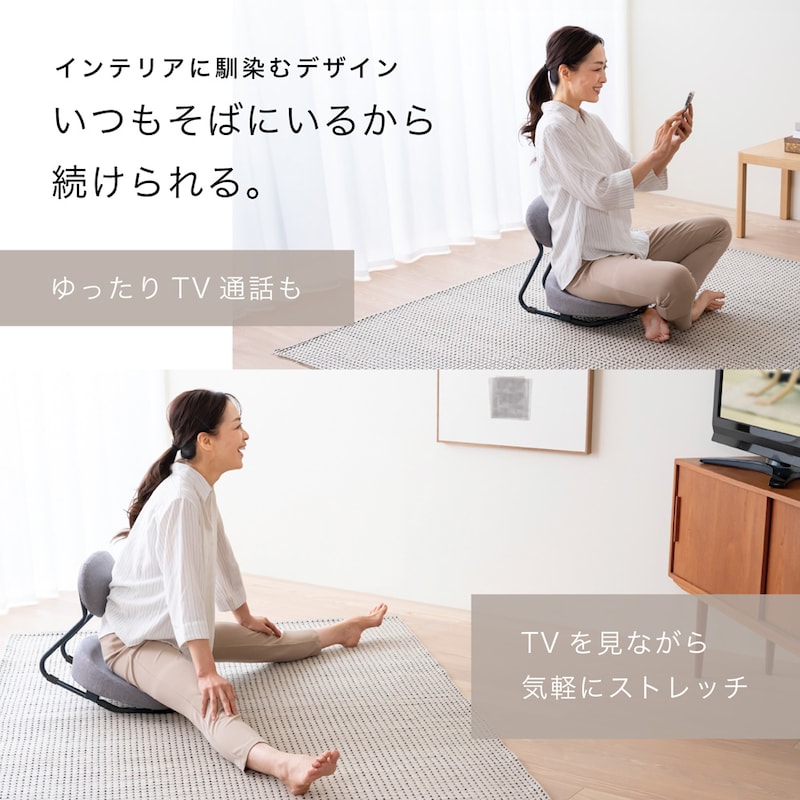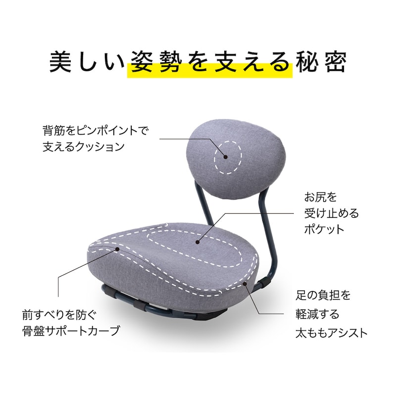 座るだけで自然に骨盤をサポートし、美しい姿勢が保つ事ができます。