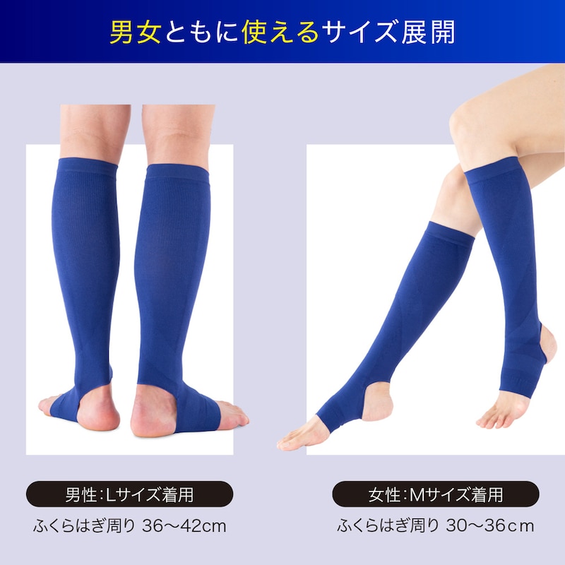 ●適応サイズ(ふくらはぎ周り)/M:約30~36cm L:約36~42cm●製品重量:M:約37.5g L:約41g●主材/ナイロン、ポリウレタン●台湾製
