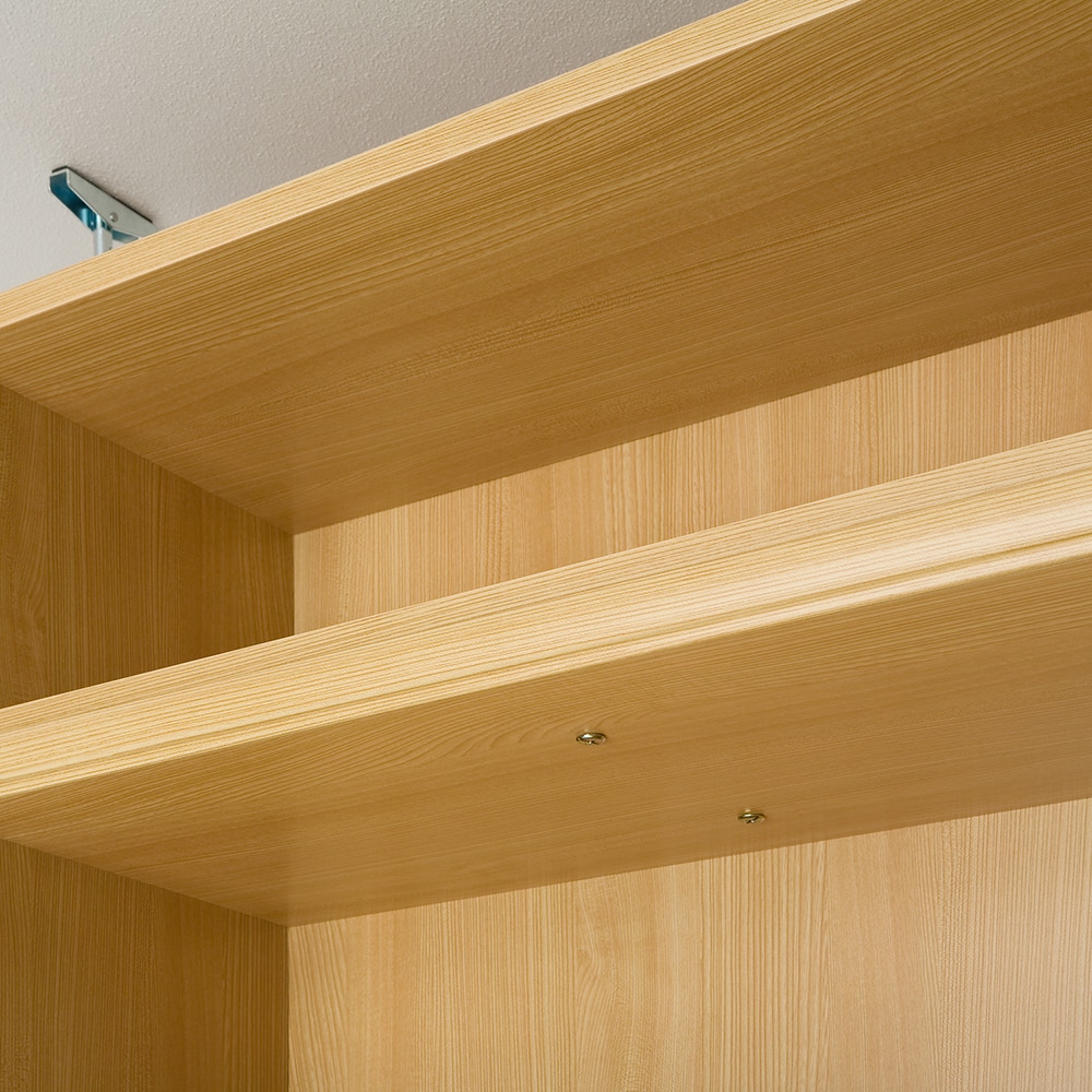 • 棚板は3cmピッチで可動。棚受けは鉄製とフリーストップ棚受けとの混合使用で本体構造の強度を強化