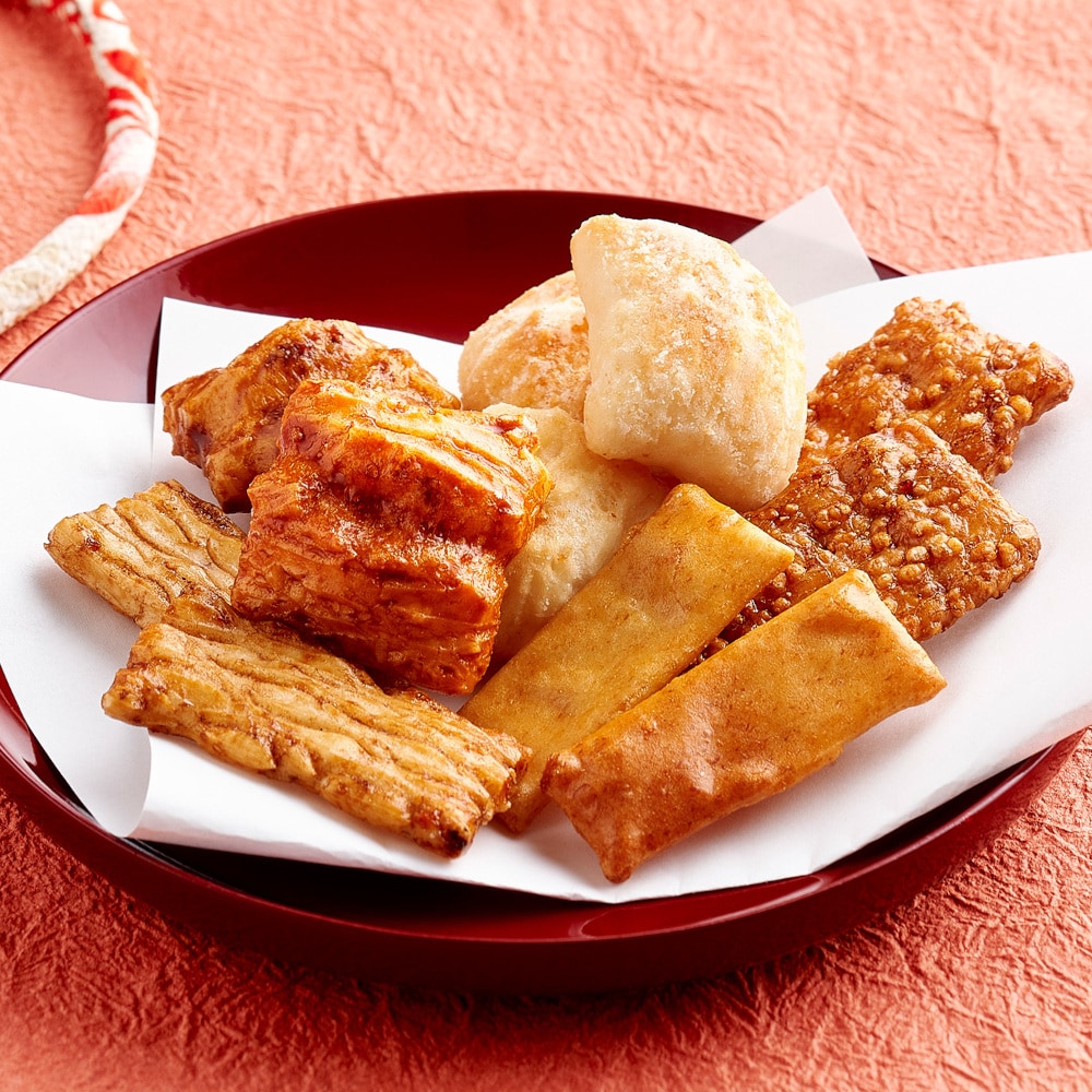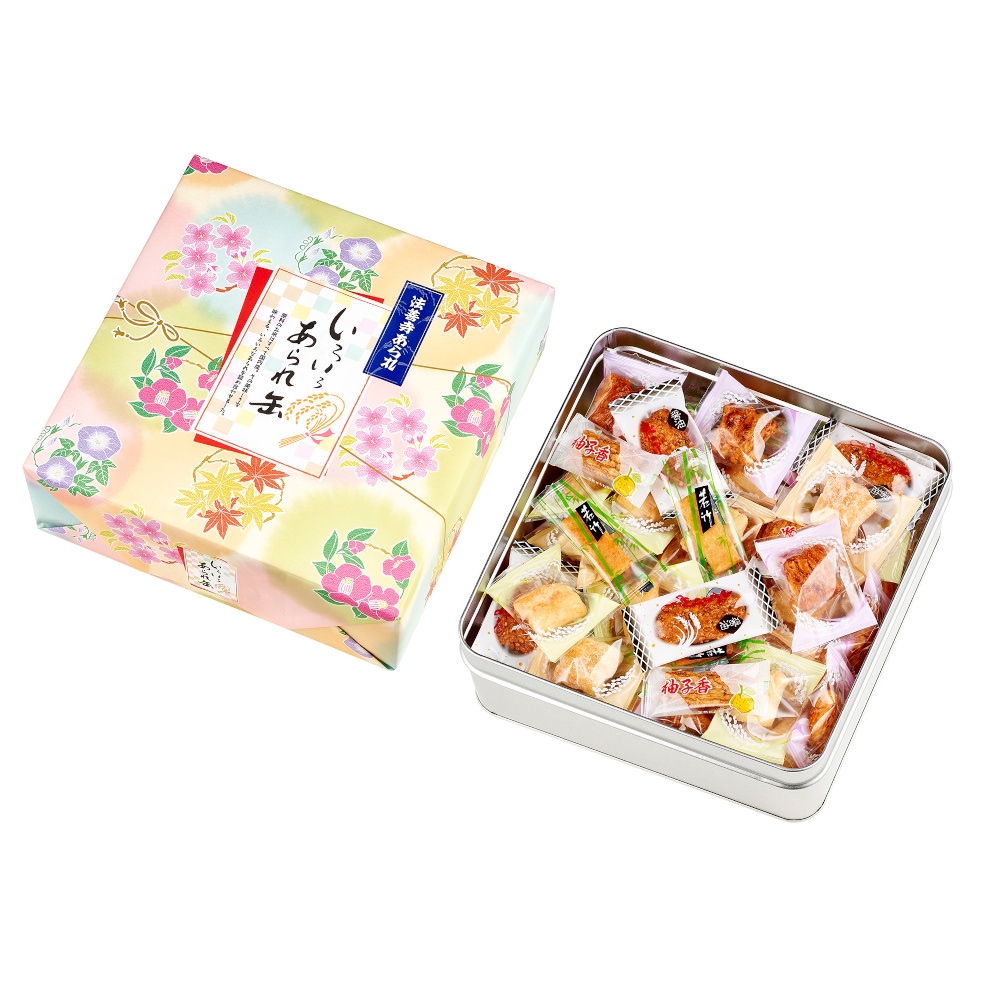 色んな味のおかきが入ってて、どれも美味しいです。全種類が等分に入っているわけじゃないようですが、好きな味のものが多く入ってて嬉しかったです。包装紙も綺麗だし、一つは贈り物として使いました。