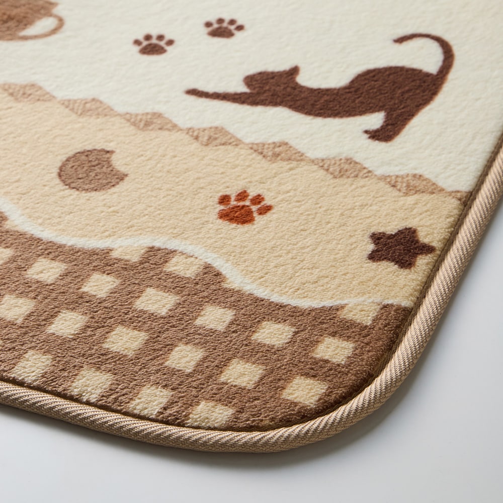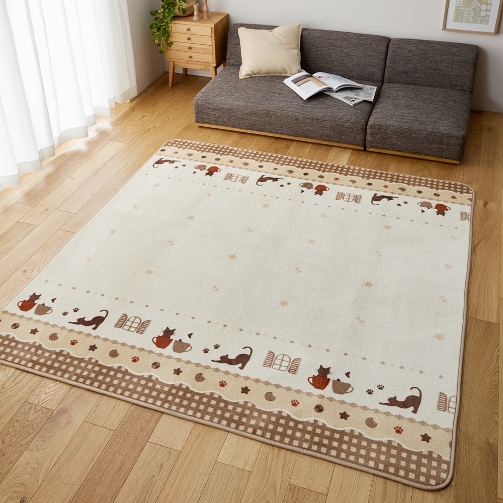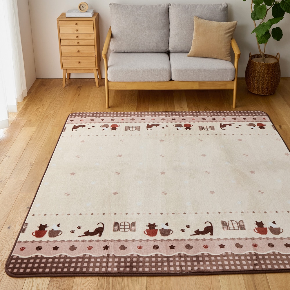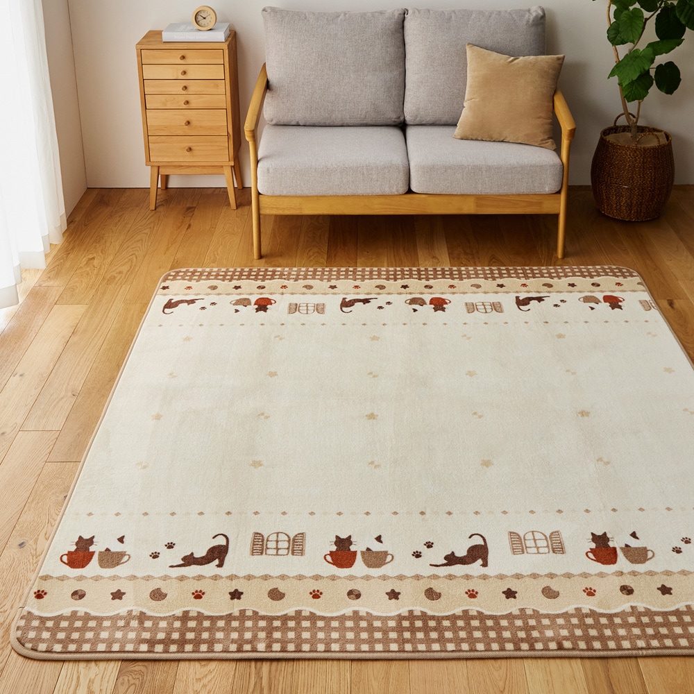 おうちで丸ごと洗える、キュートなネコ柄ラグ