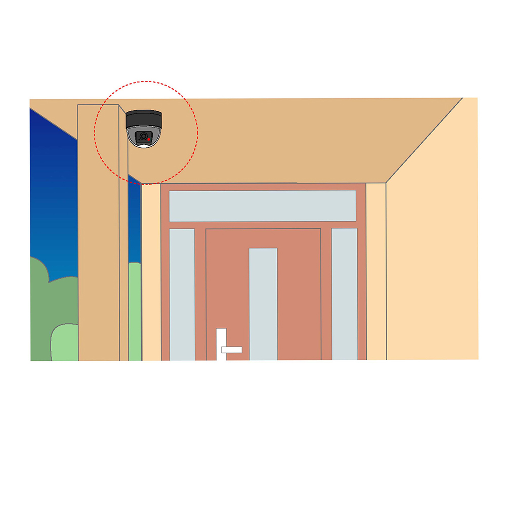 ●玄関ドア・店舗・工場・事務所の入り口外側天井部、工場・事務所内の天井部、駐輪場、駐車場などに設置してください