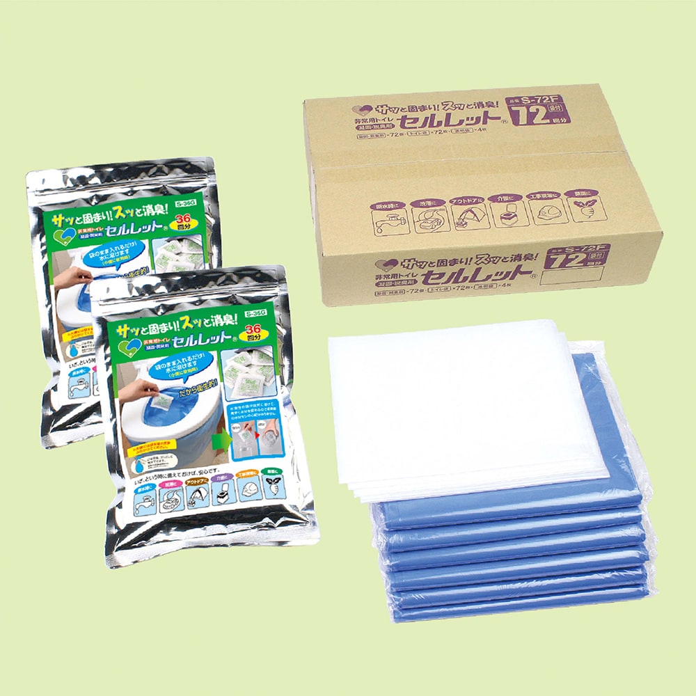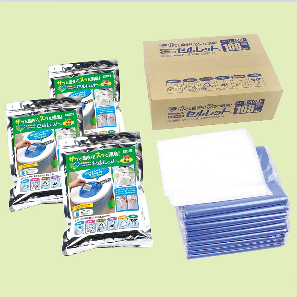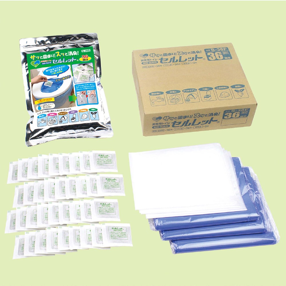 袋のまま入れるだけでサッと固まりスッと消臭!非常用トイレ「セルレット」 <36回分、76回分、108回分セット>