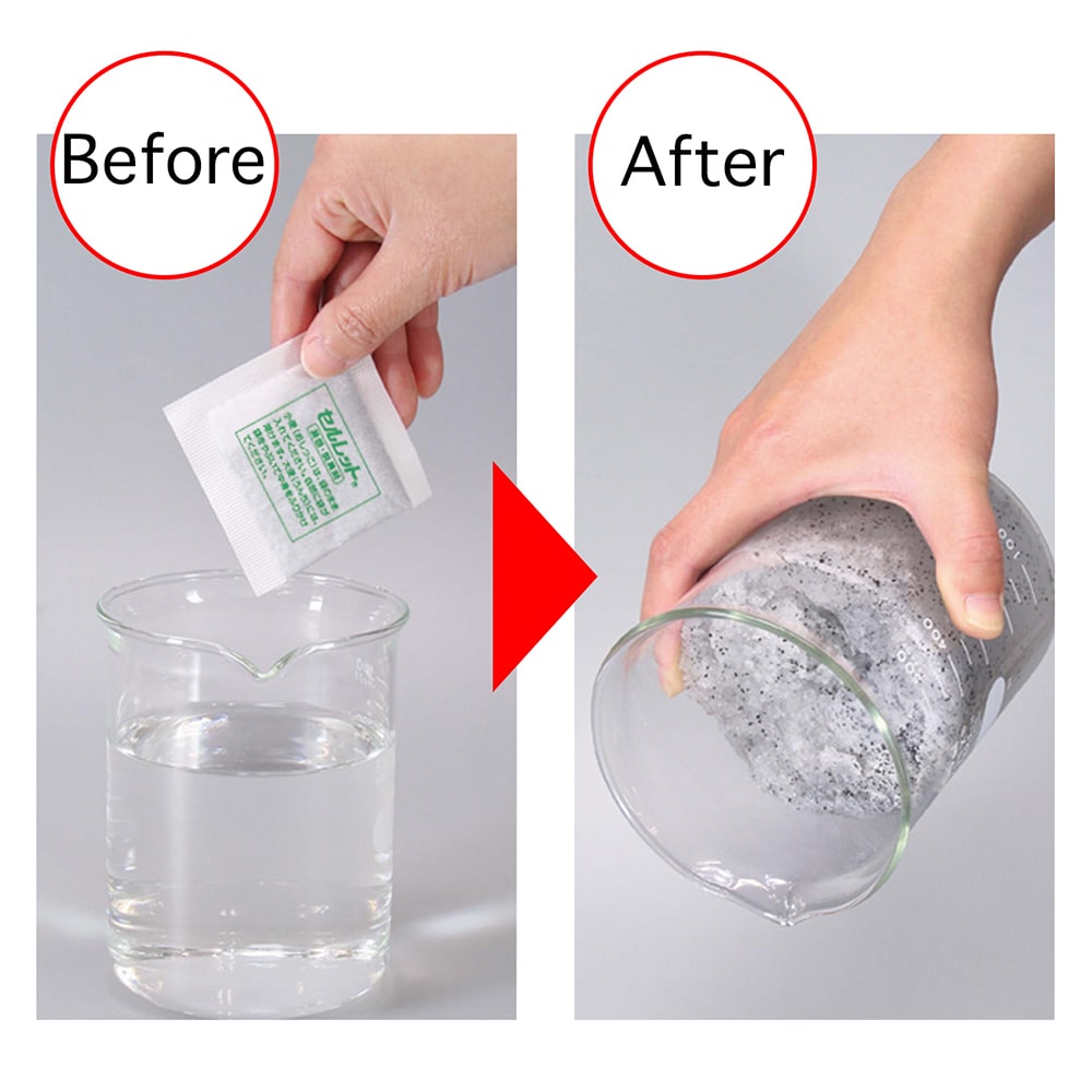 水溶性の袋が自然に溶けて素早く水分を固めてくれます