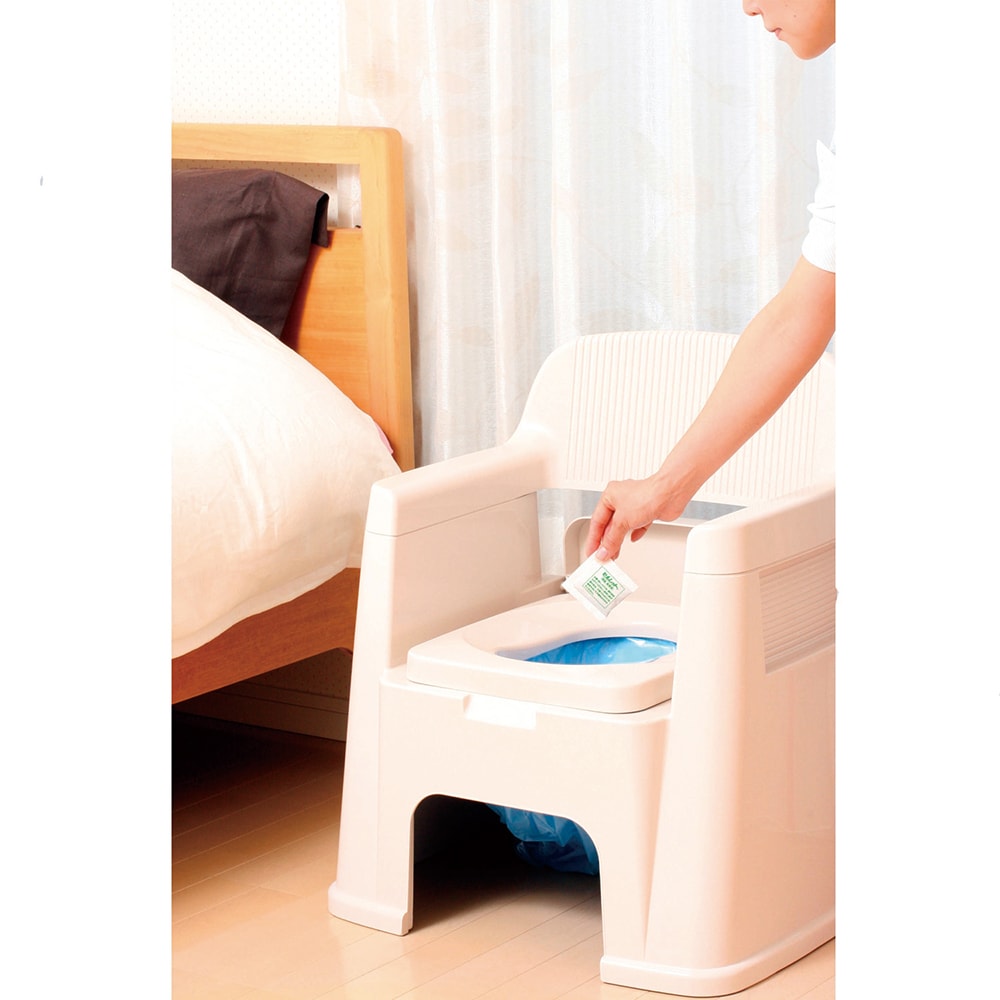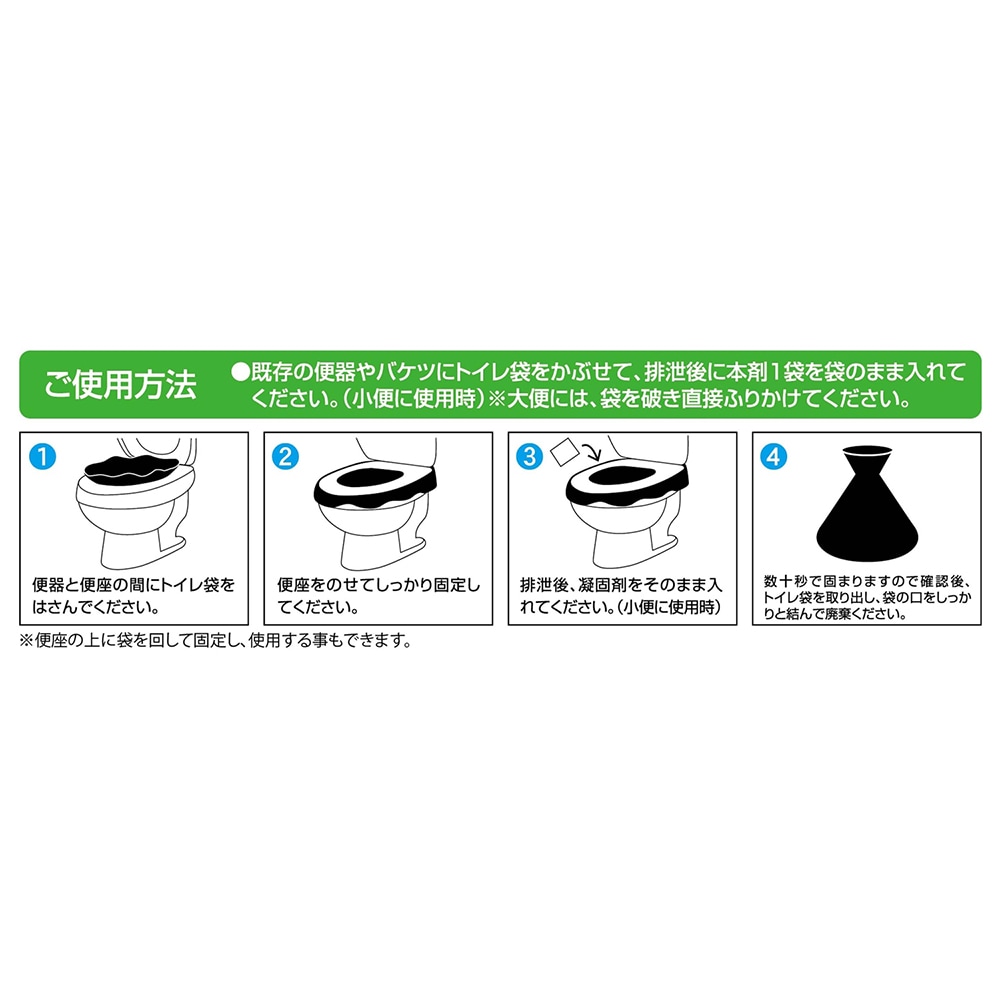 ●使い方は簡単!洋式トイレ、ポータブルトイレなどにトイレ袋をセットし排泄後に凝固・脱臭剤を袋のまま入れるだけ(小便時)
