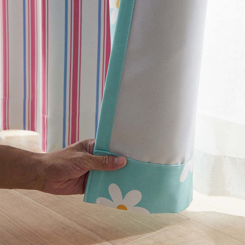 3種の生地を繋ぎ合わせたような遊び心あふれる遮光カーテン