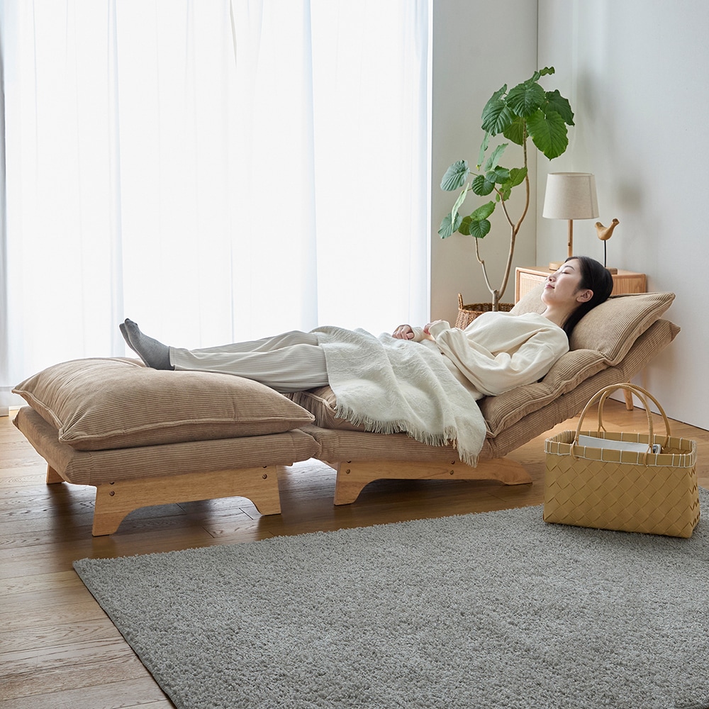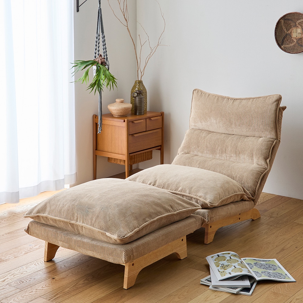 • 自由に角度調整できるのでゆったりリラックスできます。 ベージュ/オットマン、チェア