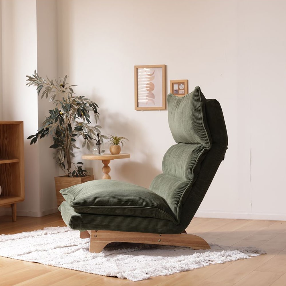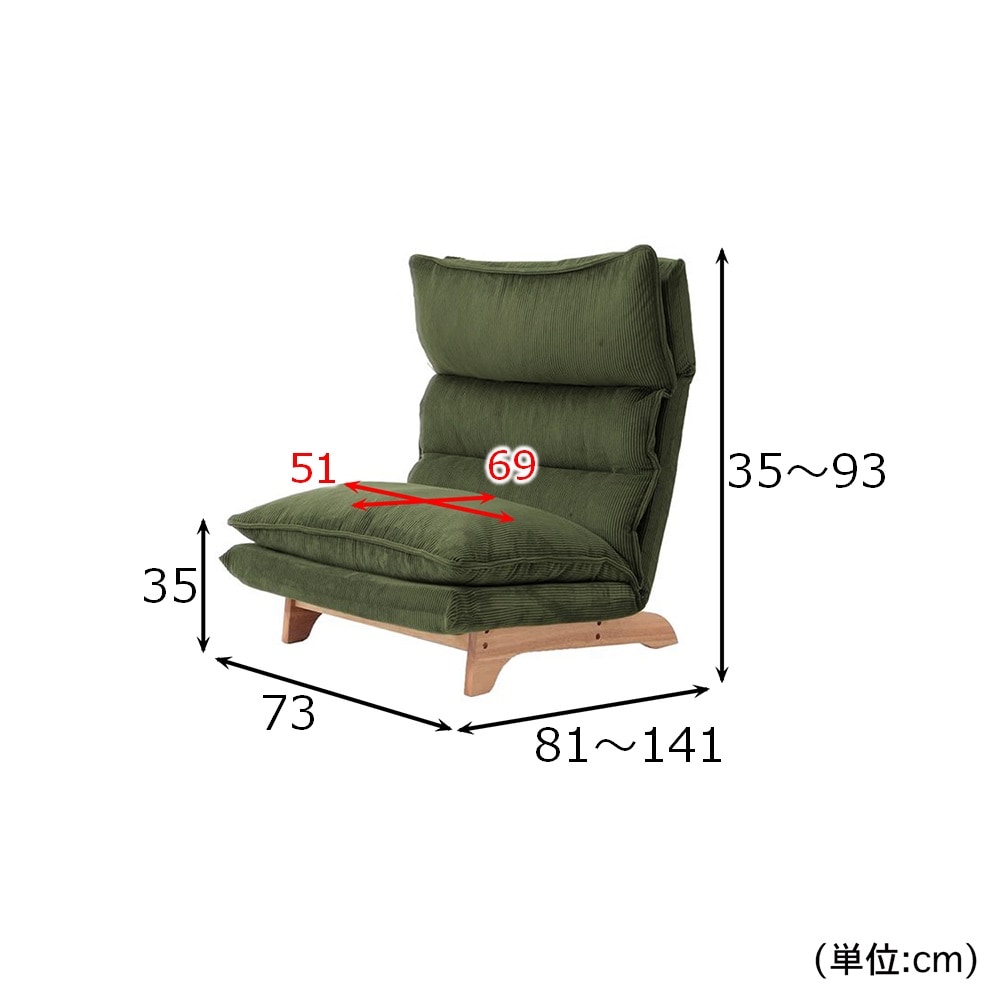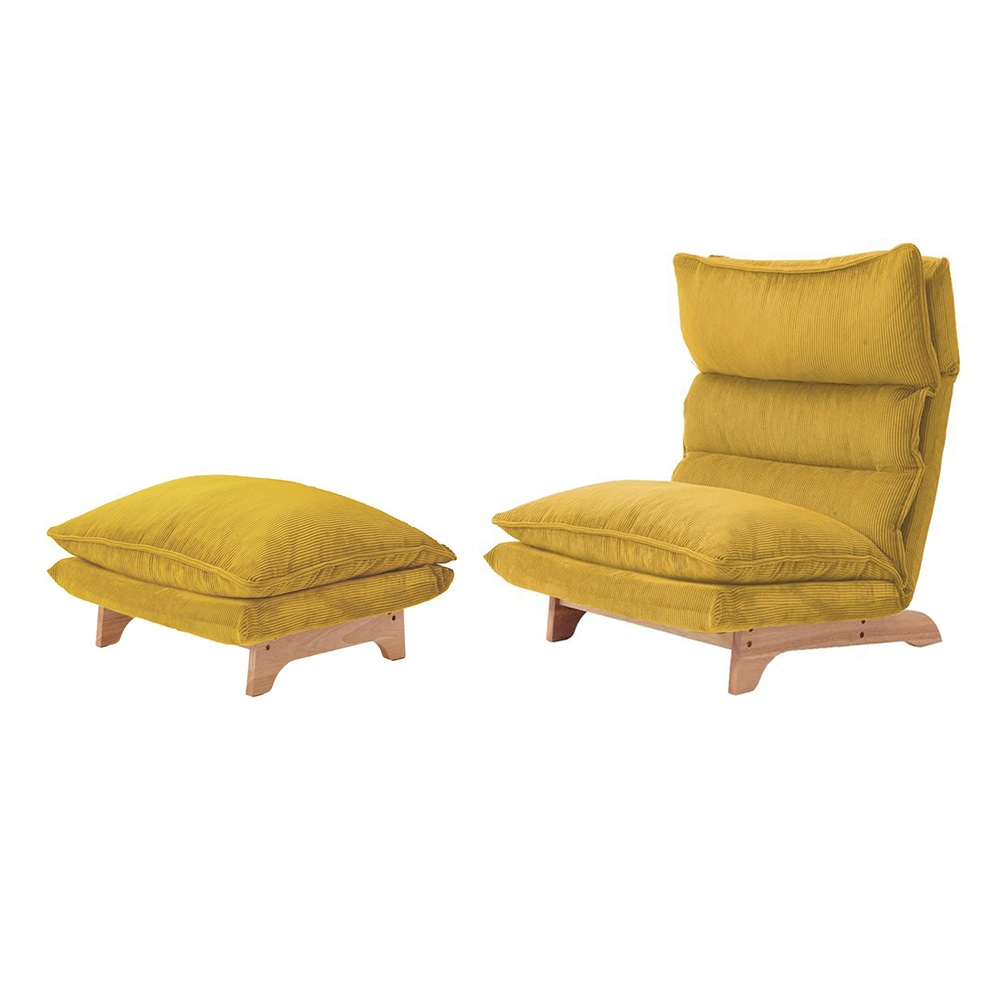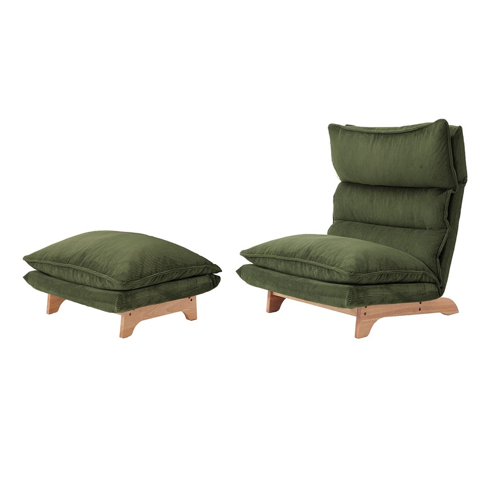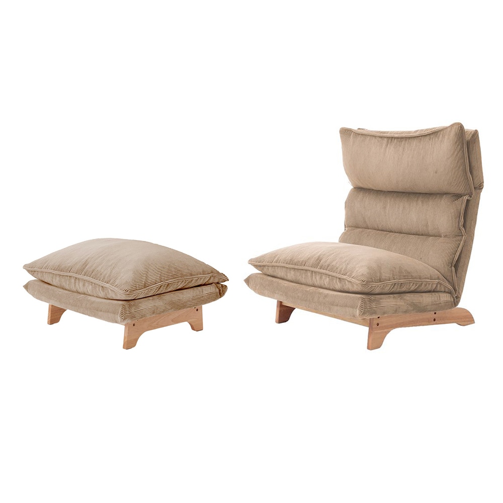 コーデュロイ生地の1人掛けハイバックローチェア・オットマン <頭部・背もたれリクライニング式>