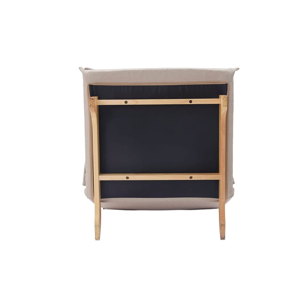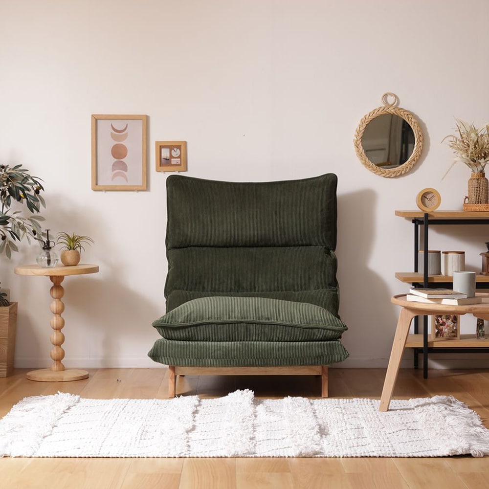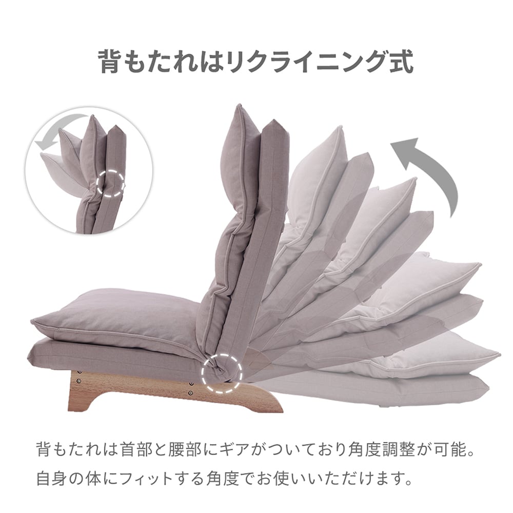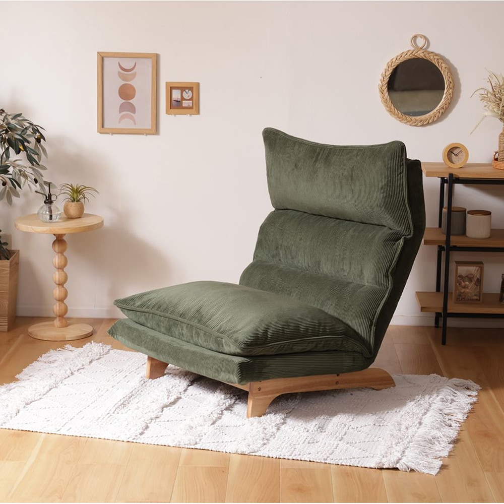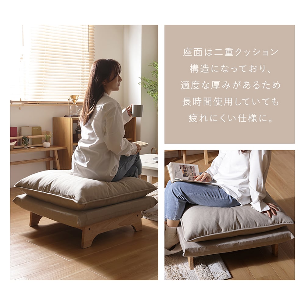 ●木製の脚部とボリュームのある二重クッションが特徴的なパーソナルチェア/ローソファー