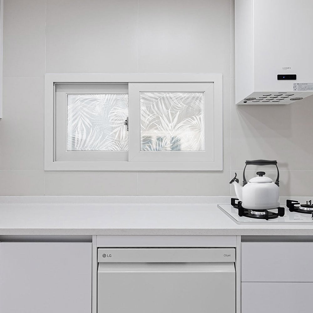 • ガラスに霧吹きで水をかけるだけで、フィルムを貼れます